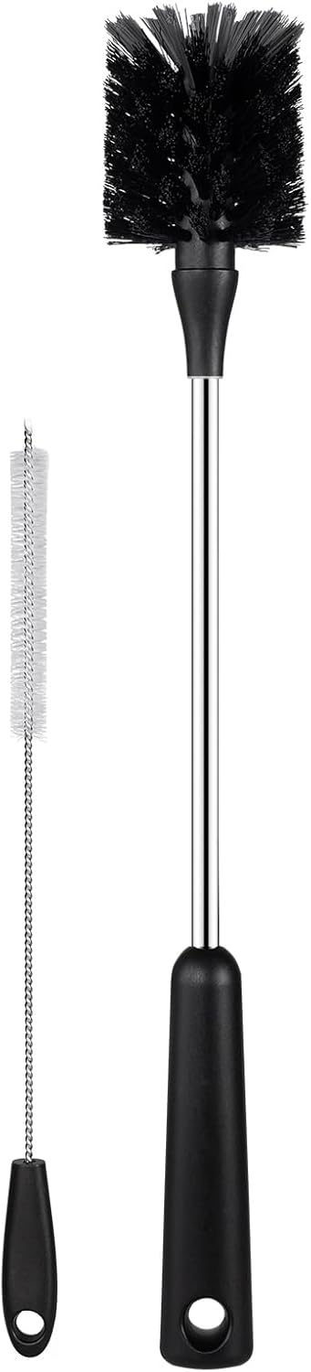 - [Multi-Purpose] Length: The 15 inch long handle of the bottle scrubber allows easy access to the interior of various shapes and sizes of bottles. The bottle brushes for cleaning with flexible bristles can reach tight corners and clean them thoroughly without scratching the surface, you can use this bottle scrubber to clean the container, cup or wine tumbler or mugs. The Straw brush and lid brush can help to do deep cleaning to the baby or water bottles.