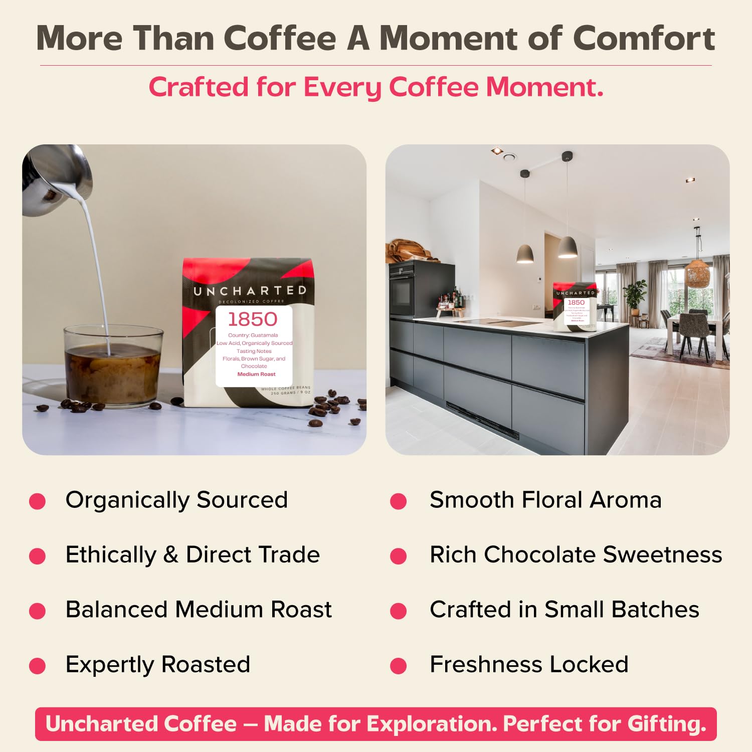 Uncharted Coffee 1850 Guatemala Whole Bean – Organic Single-Origin Medium Roast, Direct Trade, Balanced Flavor with Cocoa & Citrus Notes, Fresh Roasted, 9 oz Bag