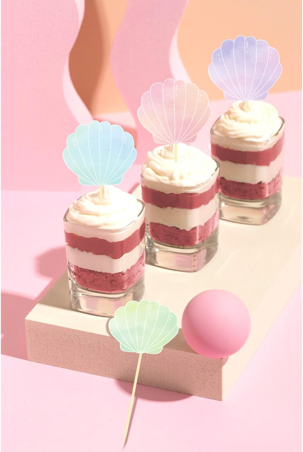 - High Quality Material: Seashell cupcake toppers is made of high quality thick card stock and food grade bamboo stick, durable and sturdy, not easy to deform or break, lightweight and portable, attractive and durable