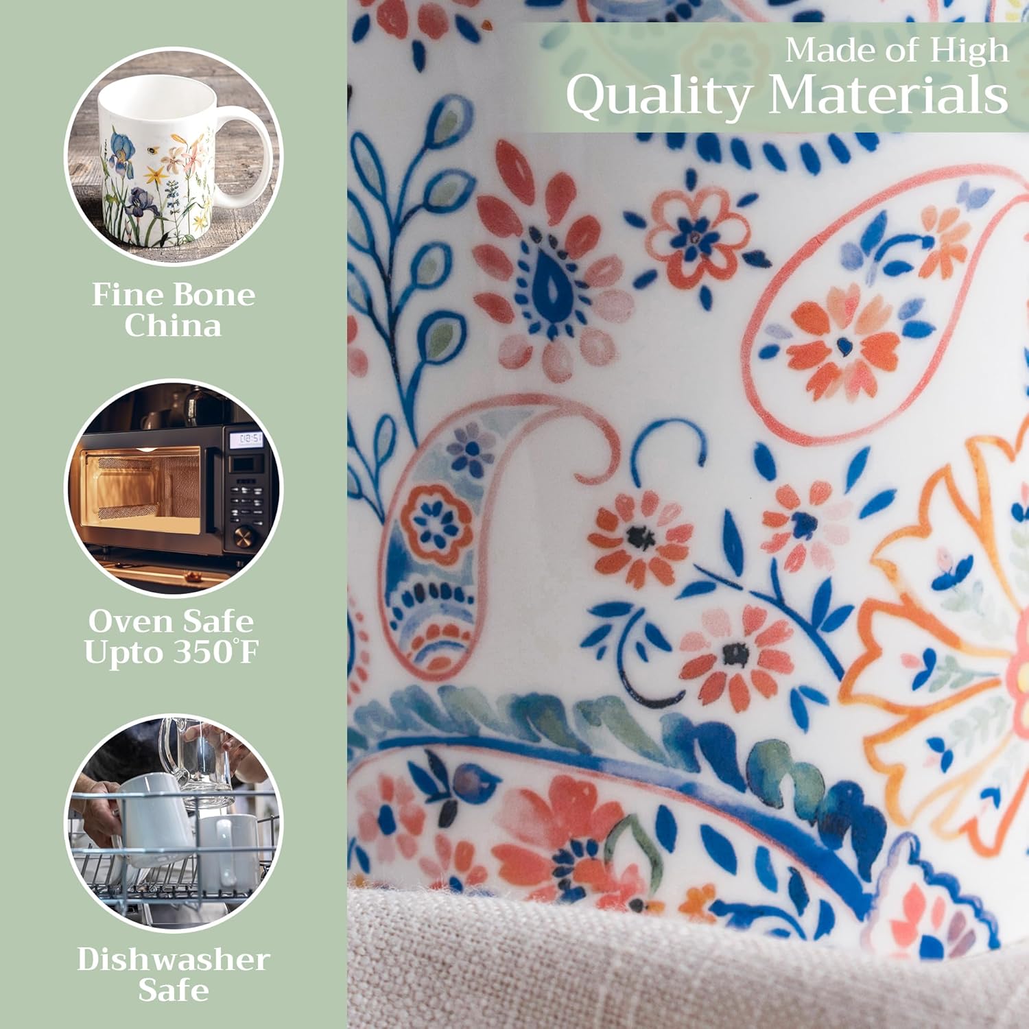 Maison d' Hermine Coffee Mug with Handles Fine Bone China Mugs Pack of One Tea Cups for Hot Beverages Cappuccino Latte Home Restaurant Office Perfect for Gift (Indian Floral - Paisley, 15 Ounce)