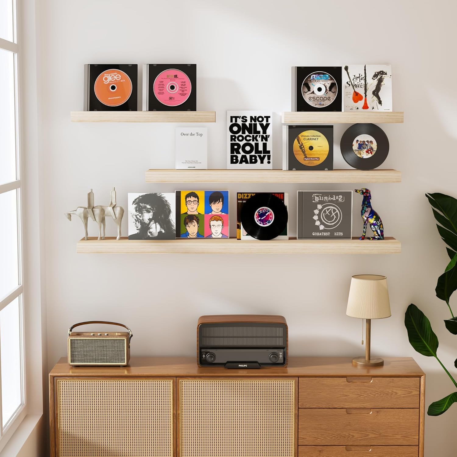 Vivelove Natural Wood Floating Shelves 48”,8 inch Deep Floating Shelf with Invisible Brackets, Unfinished Wall Shelves for Living Room, Bathroom, Kitchen, Bedroom, Home Decor, Set of 1 - Natural