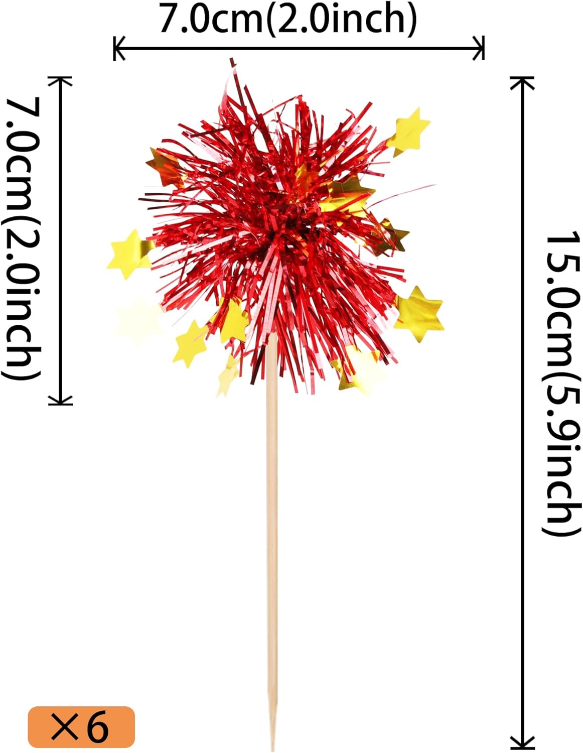 - No Assembled Required ! These foil firework cupcake toppers are assembled in advance,so you don't need to DIY it by yourself,which can save you time and effort during the process of party preparation; You can insert them into your cake or cupcakes and adjust the suitable height to show better effects.
