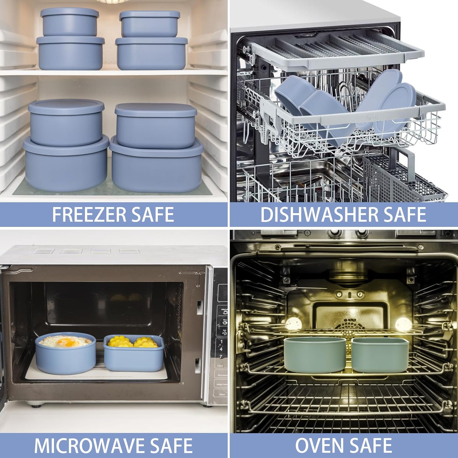 - 【100% SILICONE - SAFE & RELIABLE】Annaklin silicone food containers with lids are made of premium food-grade silicone-BPA, PVC, latex, and phthalate-free—no trace of plastic, even in the lids. These silicone storage containers are not only lightweight and unbreakable for ease to carry but also effortlessly easy to clean, making them a reliable, reusable, and thoroughly safe choice for your family's food storage needs