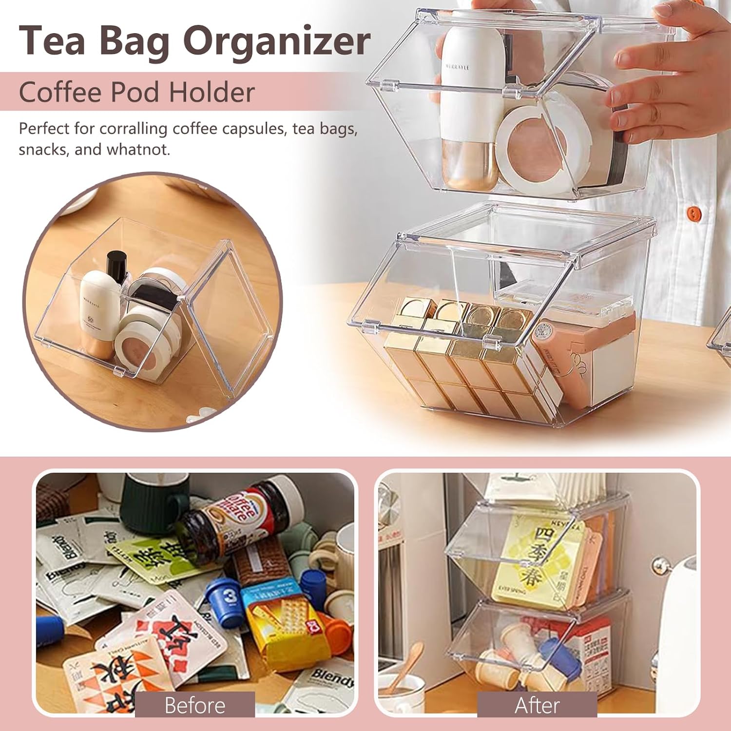 - Ample Storage Capacity: Each box can holds 15+ K-Cups, 20+ vertuopods, 55+ original capsules, 80+ tea bags, or 50+ creamer pods. Stack multiple boxes to create a personal coffee or tea station in any space.