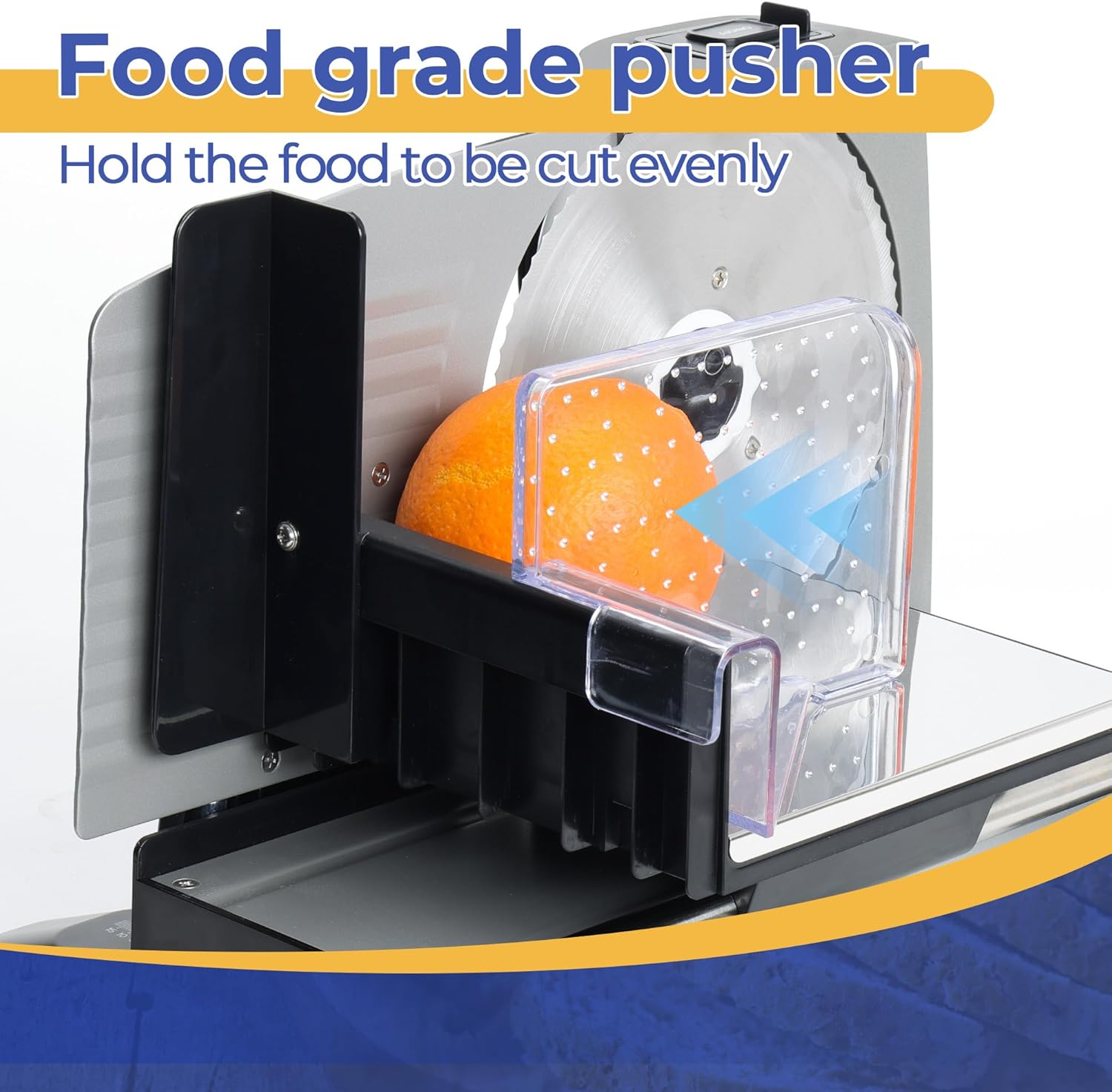 - Easy to Clean- the slicer's removable transparent guard prevents debris buildup on the cutting surface and detachable blades, the food carrier, and the food pusher make your cleaning even more convenient