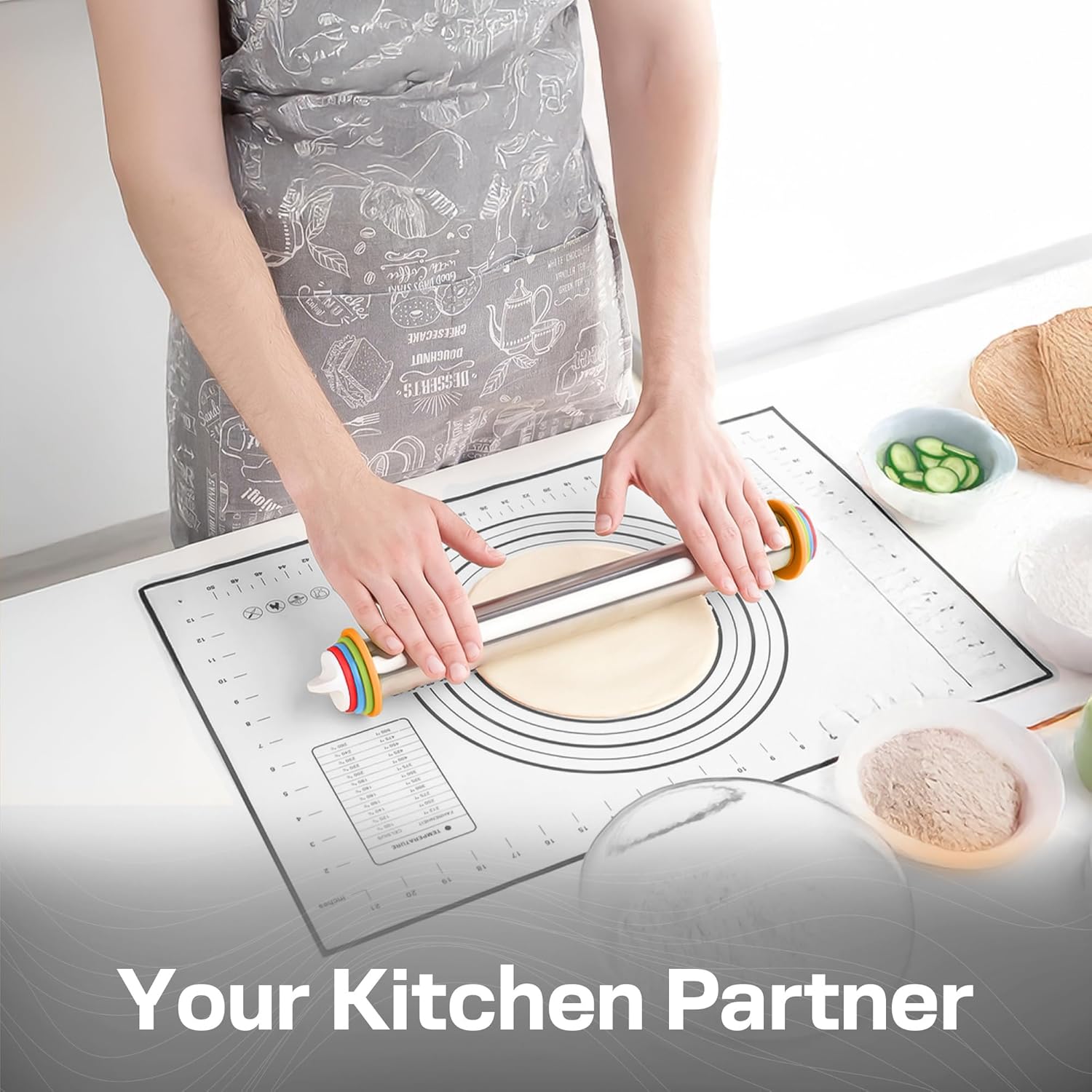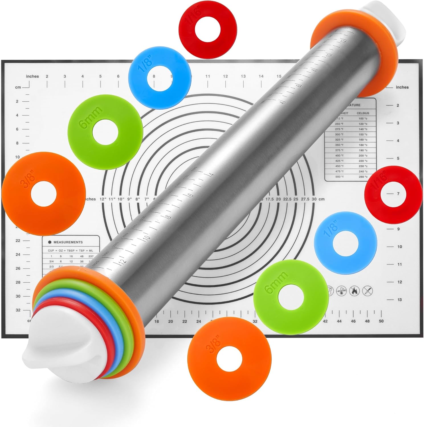 - Precision Dough Thickness Control: Features 4 removable rings (1/16", 1/8", 1/4", 3/8") to easily adjust dough thickness for perfect results every time—ideal for cookies, pizza, pies, and more.