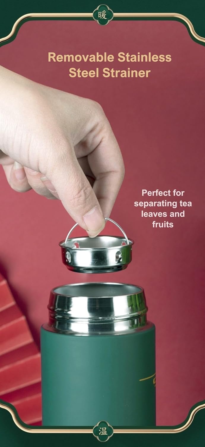 Insulated Coffee Tea Travel Thermos Mug Water Bottle with Removable Strainer and Temperature Featuring Elegant Asian Art Design - 16.9 fl oz (Blue)