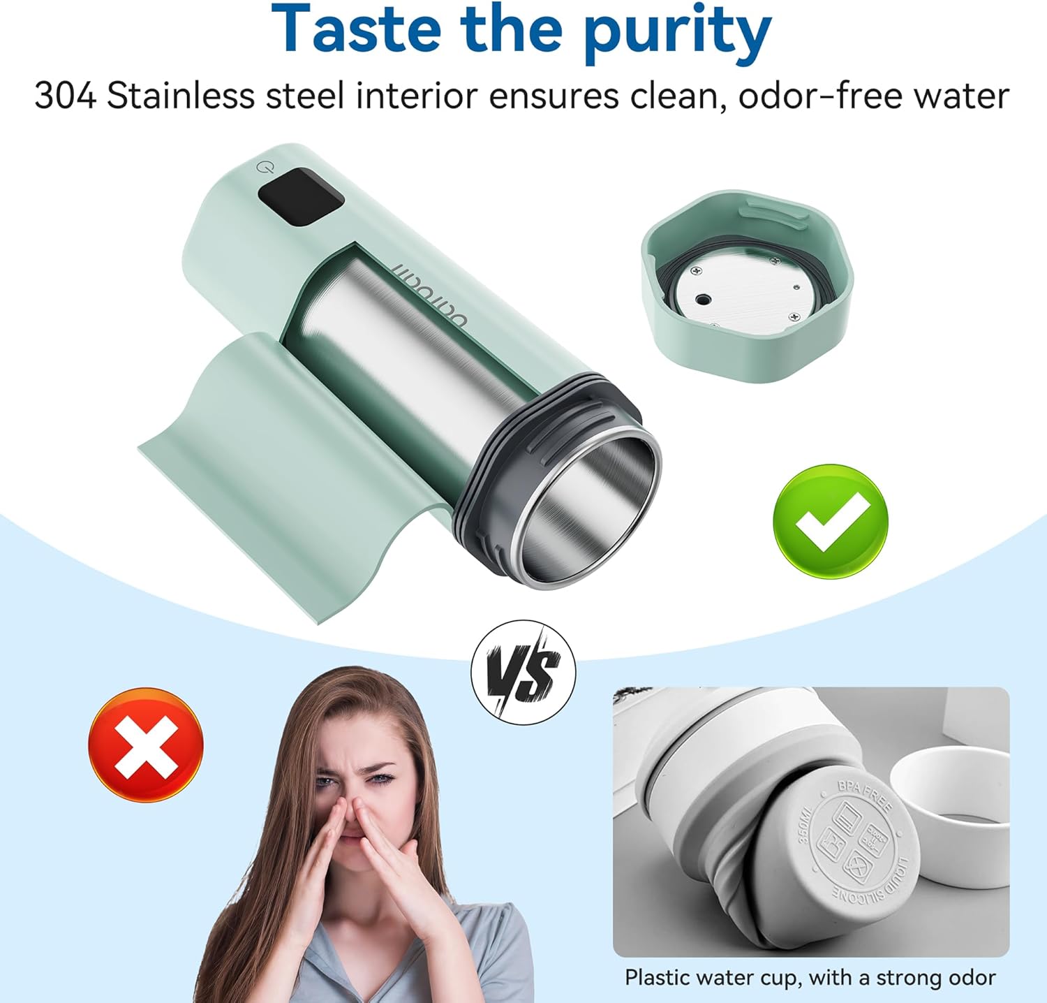 - Premium Quality: SUS304 Stainless steel interior and lid guarantee food-grade contact with your water