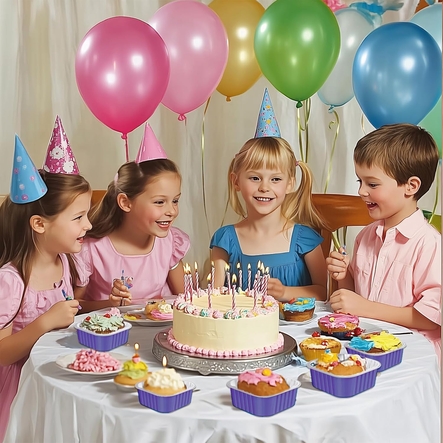 25 Pack Square Mini Cake Pans with Lids,Mini Loaf Pans with Lids,Aluminum Foil Baking Cups,Disposable Ramekins Cupcake Cups,Dessert Cups for Wedding Birthday Party Picnics,5oz (Purple)