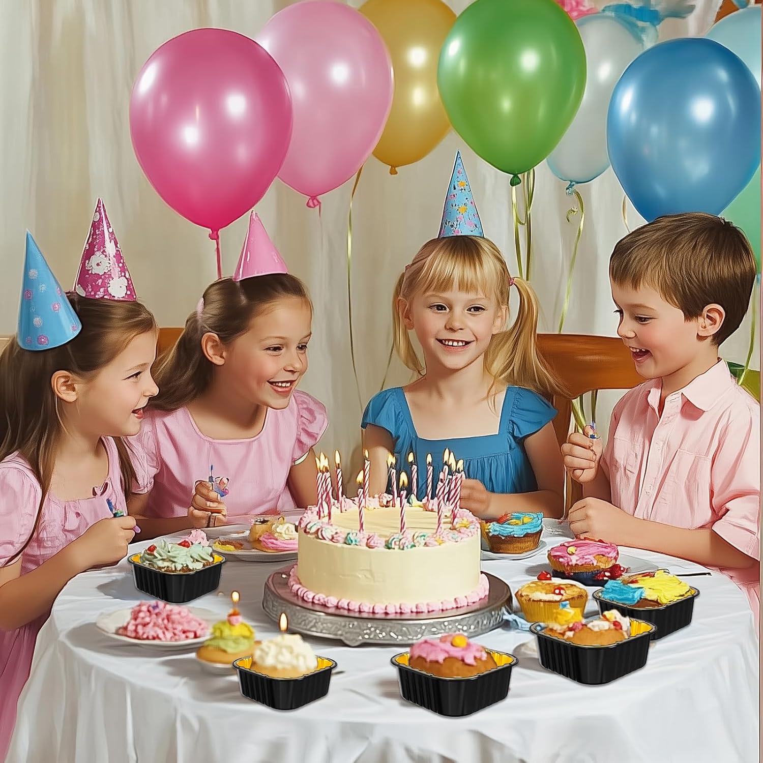 25 Pack Square Mini Cake Pans with Lids,Mini Loaf Pans with Lids,Aluminum Foil Baking Cups,Disposable Ramekins Cupcake Cups,Dessert Cups for Wedding Birthday Party,5oz (Black&Gold)