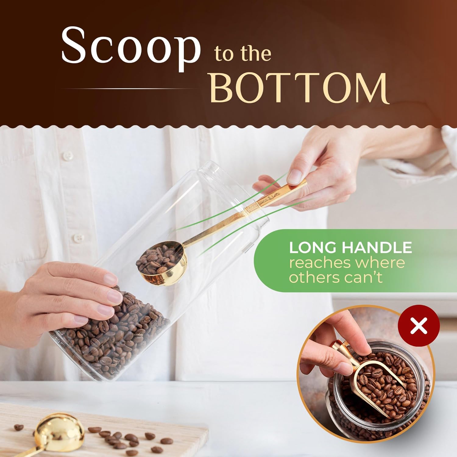 - PERFECT FOR DEEP CONTAINERS - Our coffee scooper has a long handle, allowing you to scoop out the remaining powder at the bottom of your tall jars without making a huge mess on your counters.