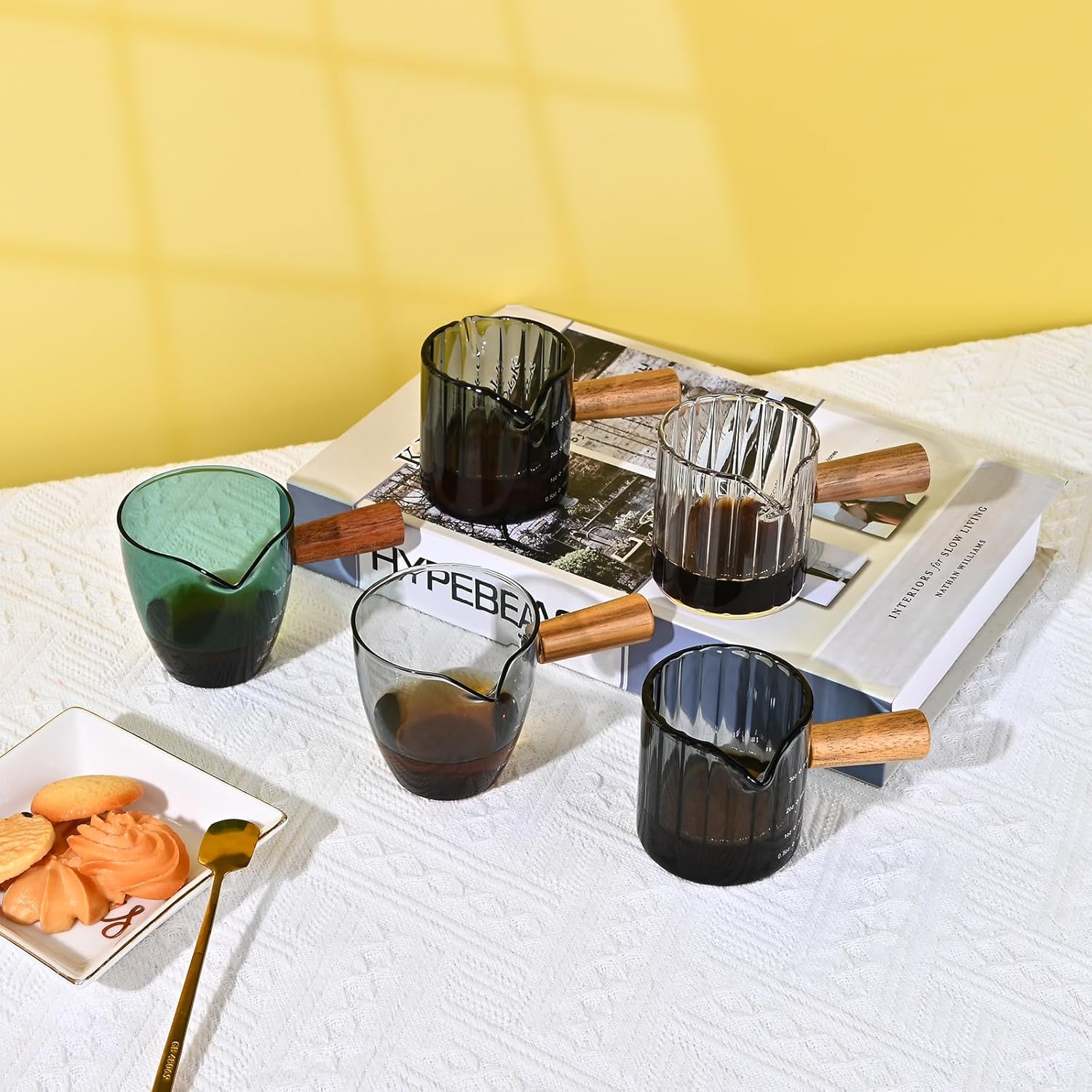 - Detail: The espresso cup has a simple and exquisite appearance; with spout for easy pouring; two clear scales on the body of the cup to keep track of the amount of coffee you need; a wooden handle for a more comfortable grip