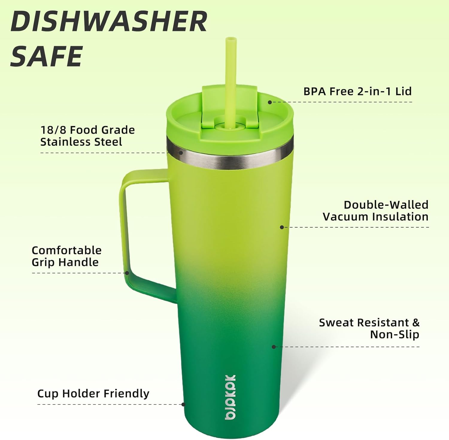BJPKPK Insulated Tumbler with Handle, 30oz Insulated Tumblers with Lid and Straw, Stainless Steel Metal Water Bottles, Coffee Travel Mugs, Cups, Bamboo Grove