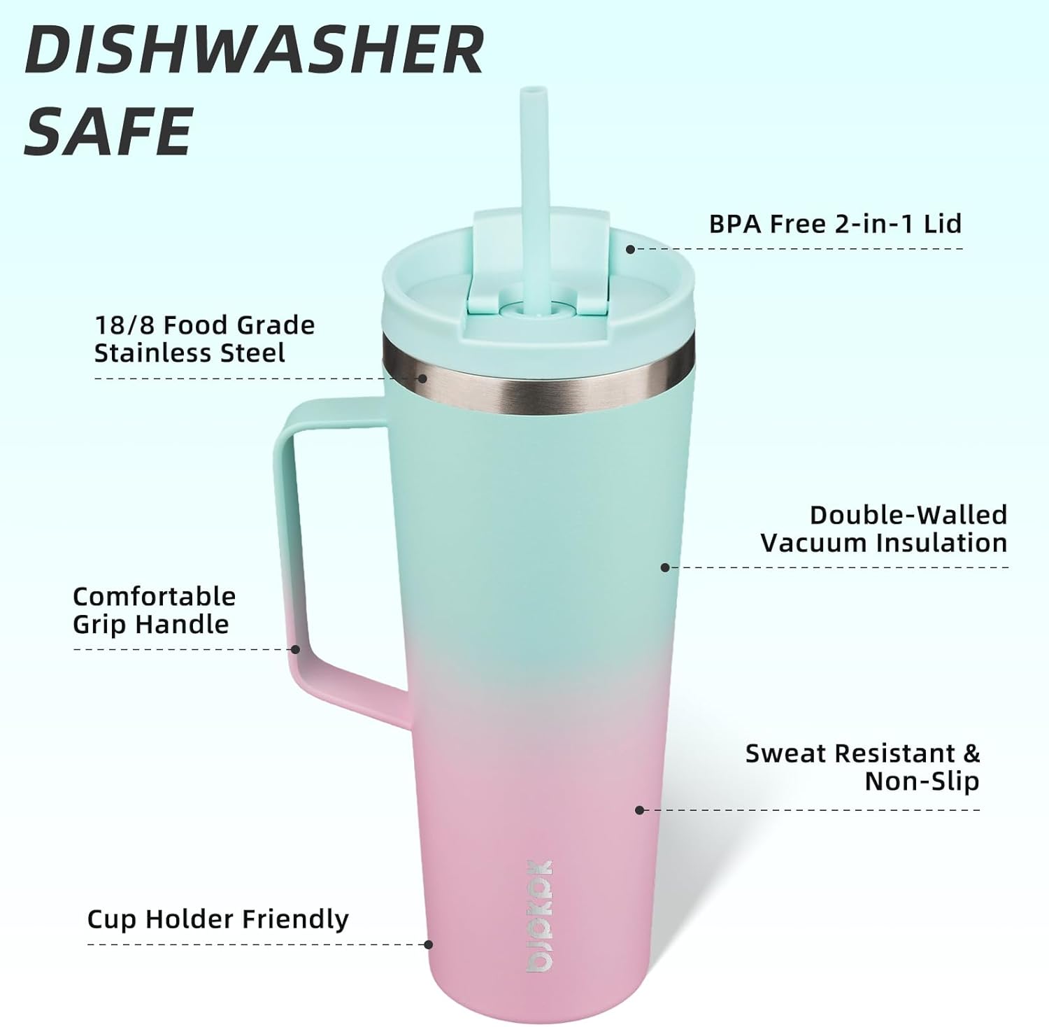 BJPKPK Insulated Tumbler with Handle, 26oz Insulated Tumblers with Lid and Straw, Stainless Steel Metal Water Bottles, Coffee Travel Mugs, Cups, Marshmallow