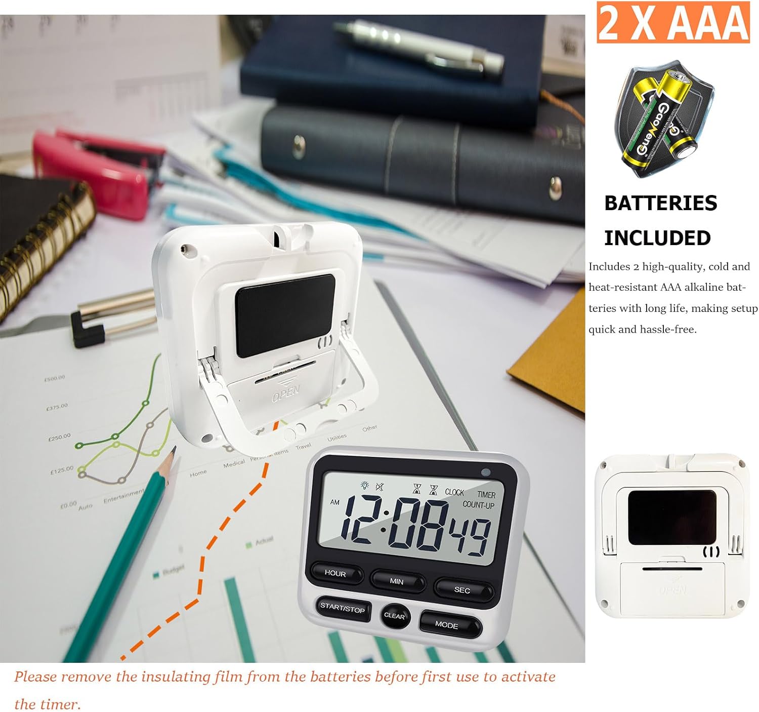 - 【Three Placement Options】: Designed for flexibility, you can attach the timer to any surface with its strong magnet, stand it up using the built-in bracket, or hang it as needed for optimal visibility.