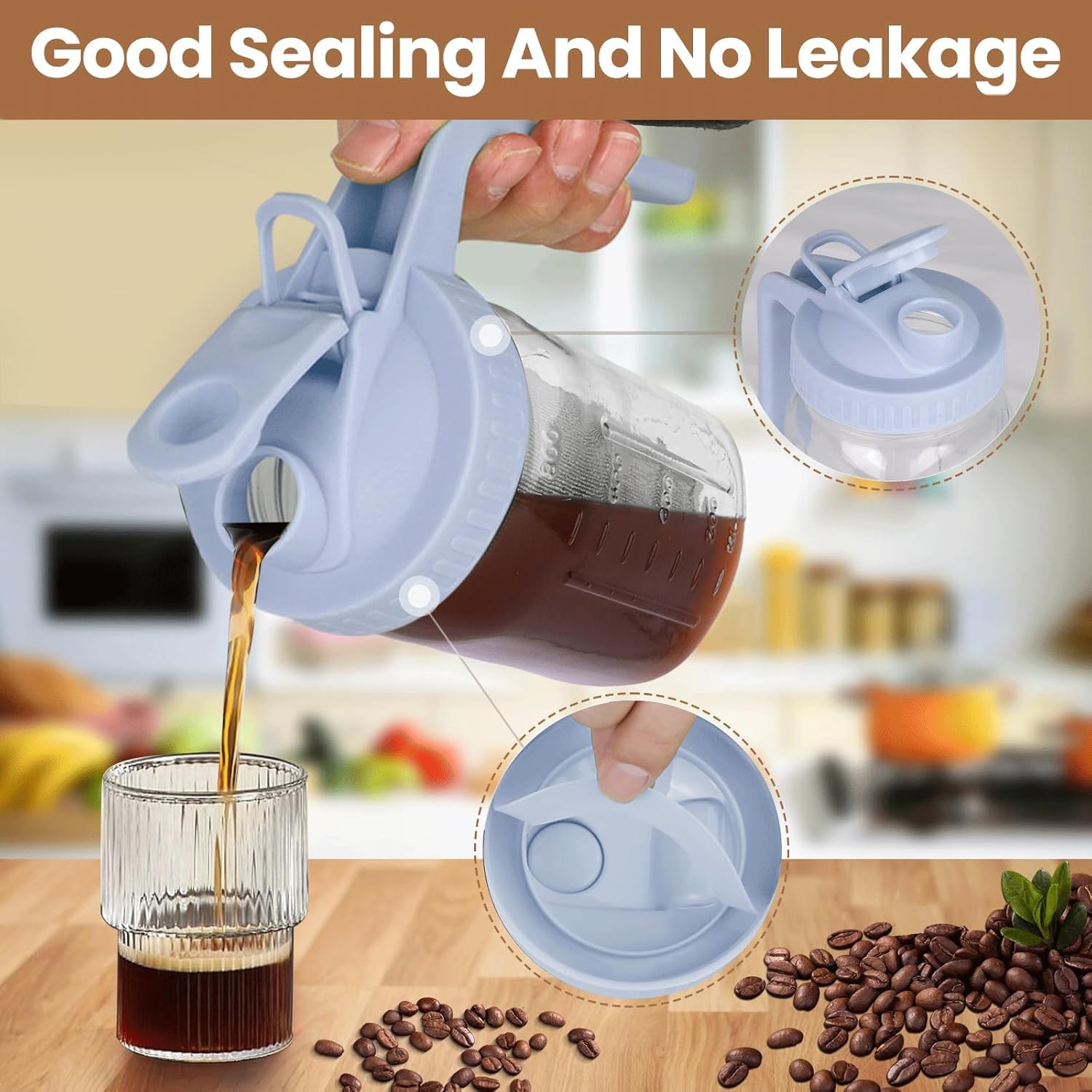 - 【Pour Spout Handle Lid】: The ergonomically thicken handle ensures a firm grip and make the cold brew coffee pitcher easy to carry. The airtight spout and well sealing silicone ring will make you say goodbye to unwanted spills & food odors, prolonging fridge beverage freshness. The flip cap lid design make the cold brew pitcher become a easy pour dispenser for pouring and storage.