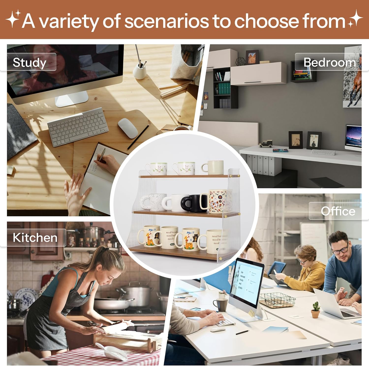 - Sturdy And Durable: The stand is made of premium wood and acrylic panels for durability. The sturdy construction ensures that it can hold the weight of multiple mugs without wobbling or tipping