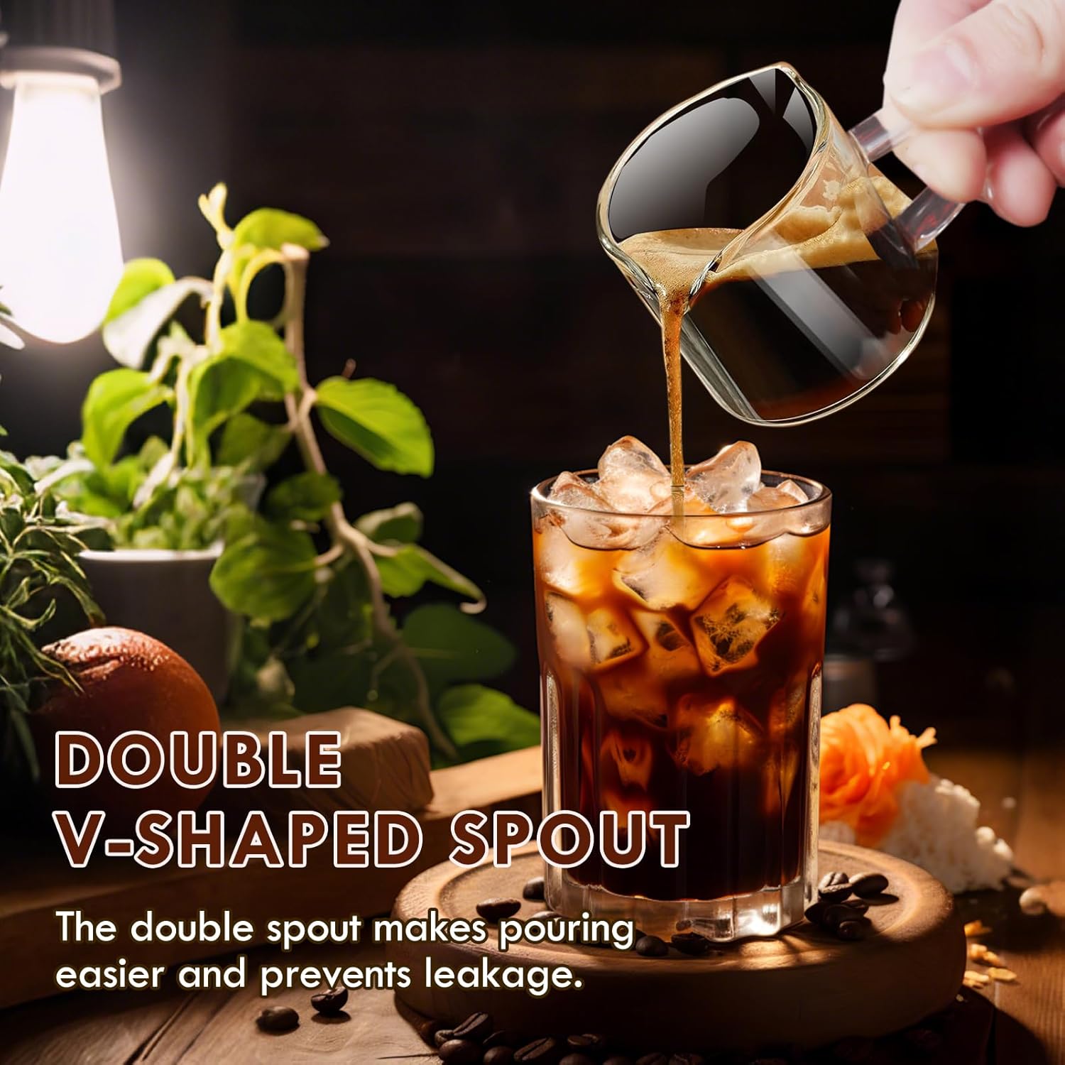 - 【Double V-shaped spout】The espresso cup measuring cup is designed with 2 spouts, and the double spouts are more convenient for pouring and not easy to leak. Prevents staining the desktop and is a good helper for your coffee.