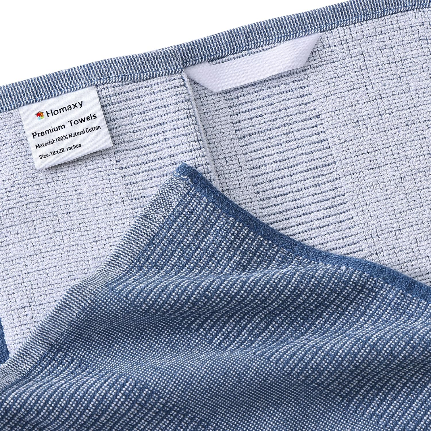 Homaxy Premium Kitchen Towels(18”x 28”, 6 Pack), Large Cotton Kitchen Hand Towels, Flat and Terry Dish Towels, 380 GSM Highly Absorbent Tea Towel Set with Hanging Loop, Navy Blue/Grey/Black