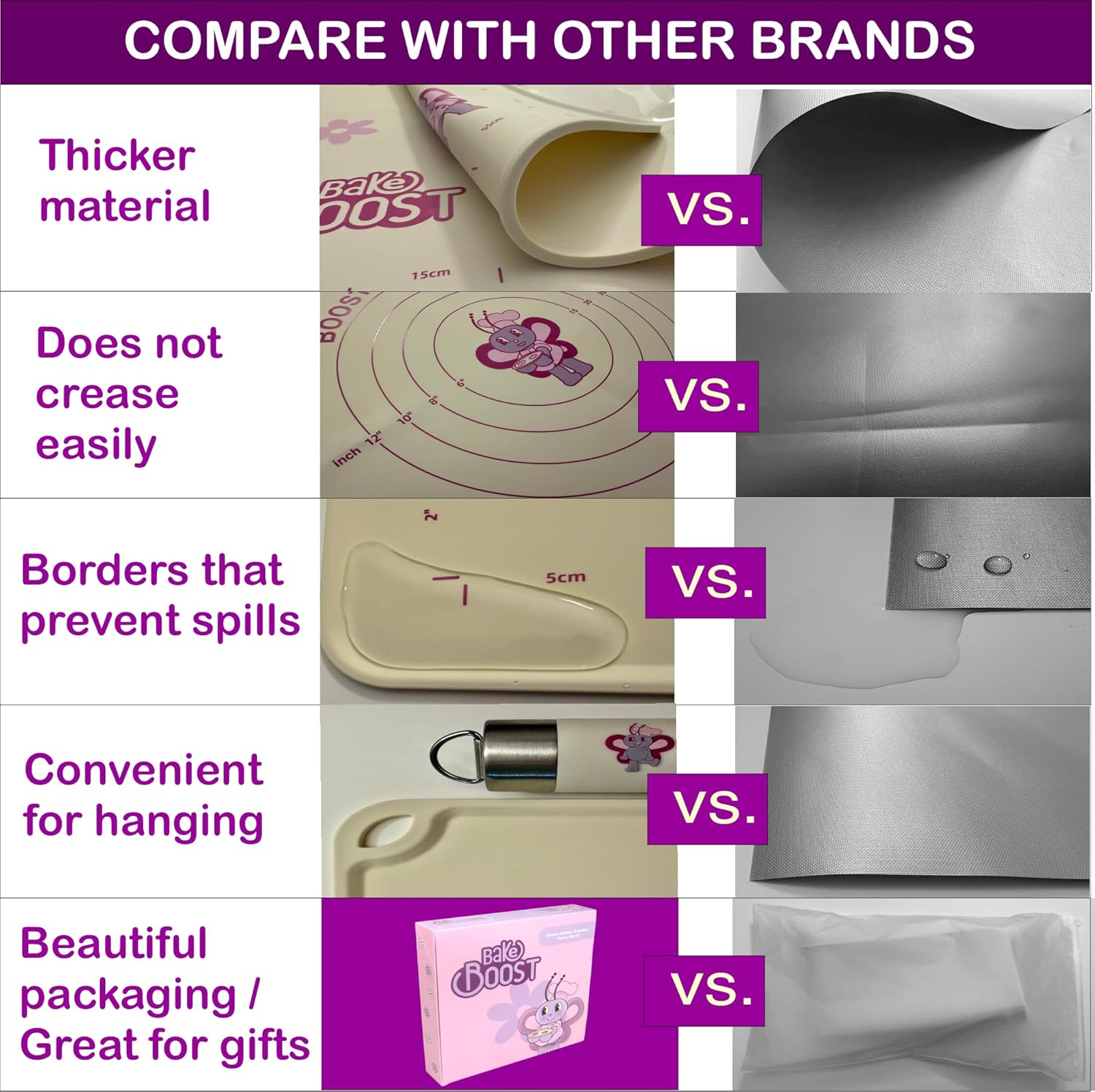 - 🍪 Premium Non-Stick & Heat-Resistant Pastry Mat – Our food-grade silicone baking mat ensures a non-slip, non-stick surface for rolling dough, fondant, pizza, cookies, and more. Heat-resistant up to 480°F (250°C) for oven use.
