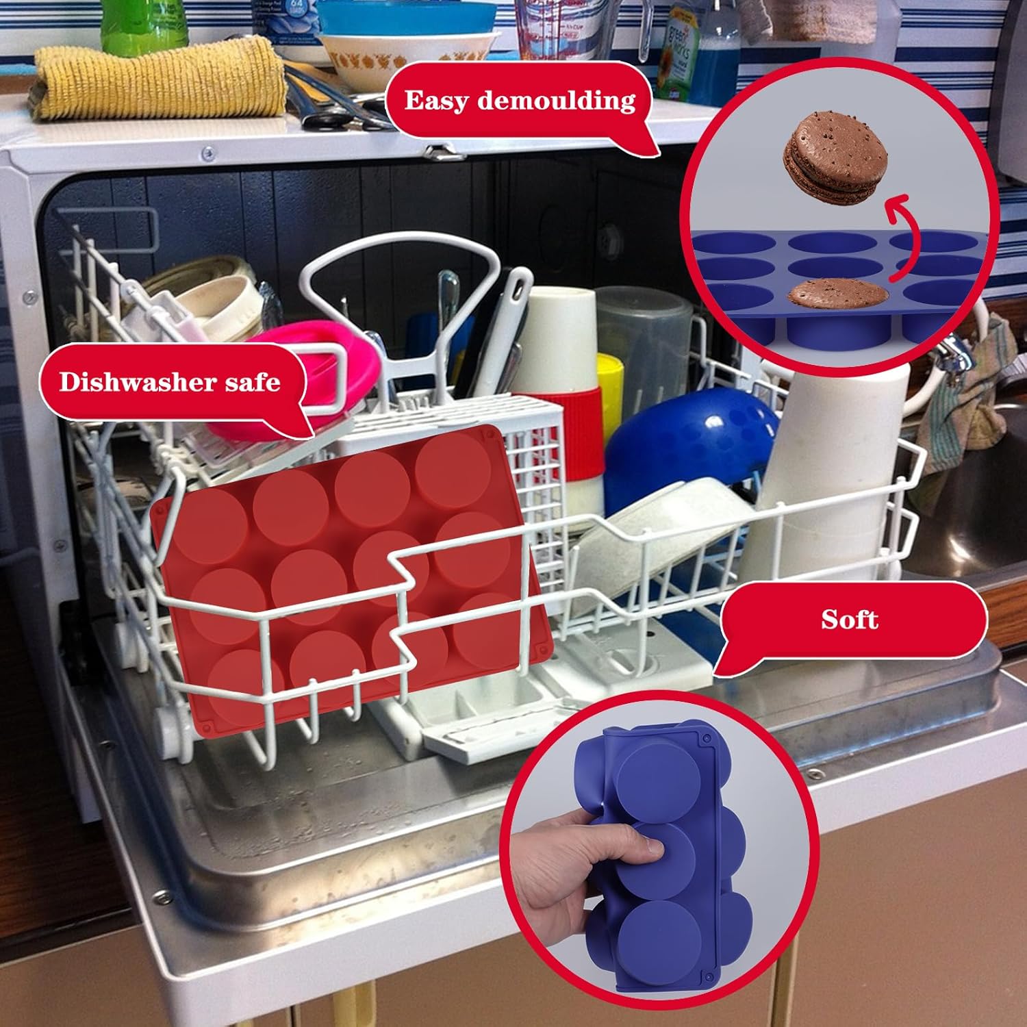 Round Chocolate Cookie Silicone Molds, New Size 12-Cavity Cylinder Chocolate Cover Cookie Silicone Molds for Candy Mini Cakes Jelly Baking (Red Blue)