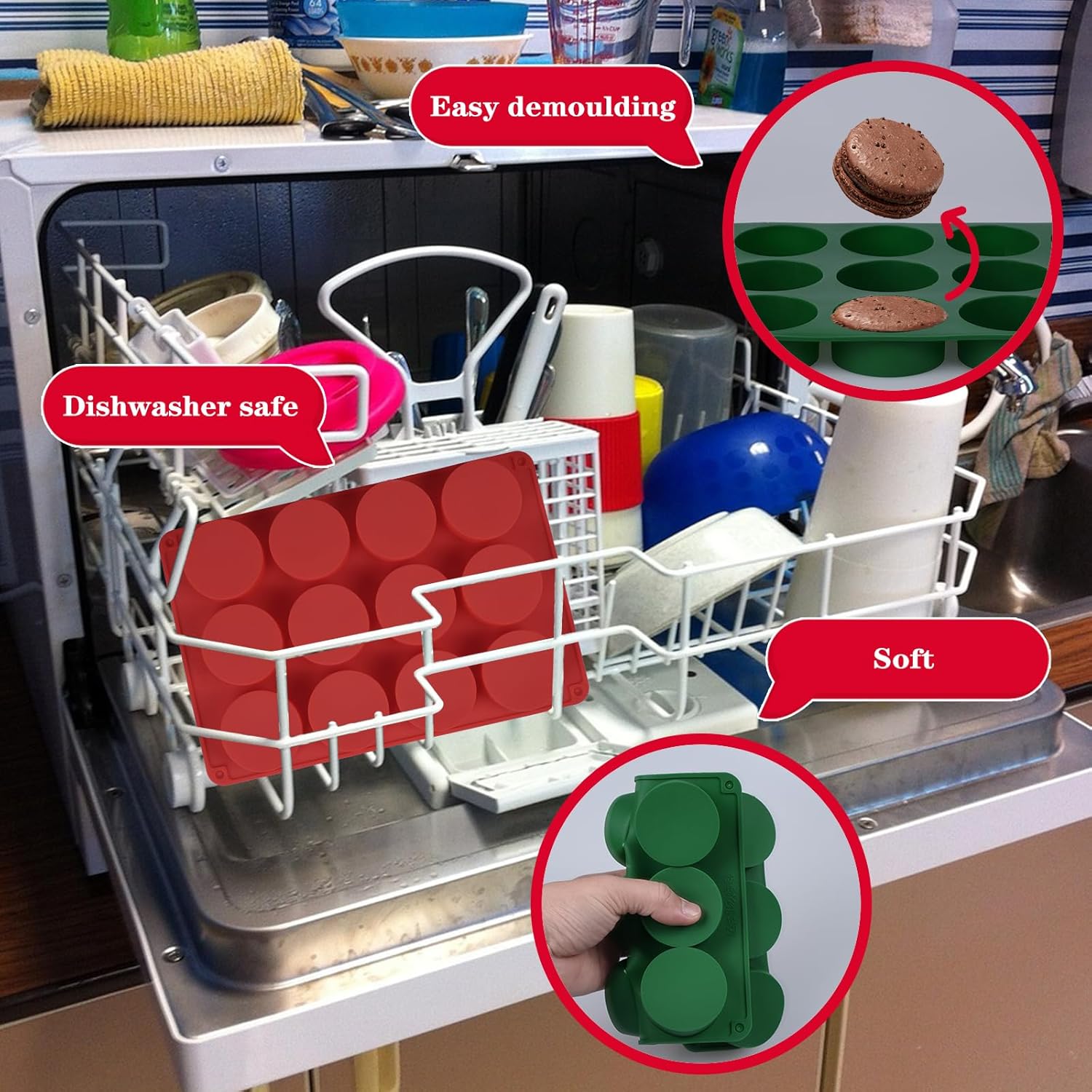 - 【QUALITY MATERIAL】:Silicone oreo cookie molds are made of food-grade silicone. Flexible and Non-Stick, Silicone temperature resistant from -40 to 230 degrees Celsius (-40℉to +440℉), oven, microwave, dishwasher and freezer safe. They can be hand washed or conveniently cleaned in the dishwasher for a hassle-free cleanup.