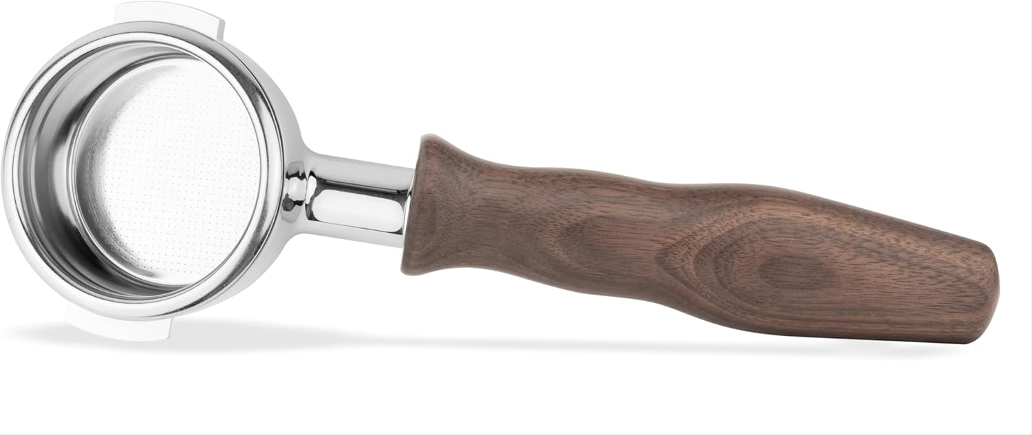 LILQ 58mm Bottomless Naked 2 Ears Portafilter Compatible with E61 Grouphead Machines– Includes 18–20g Basket (Walnut, 58mm For E61)