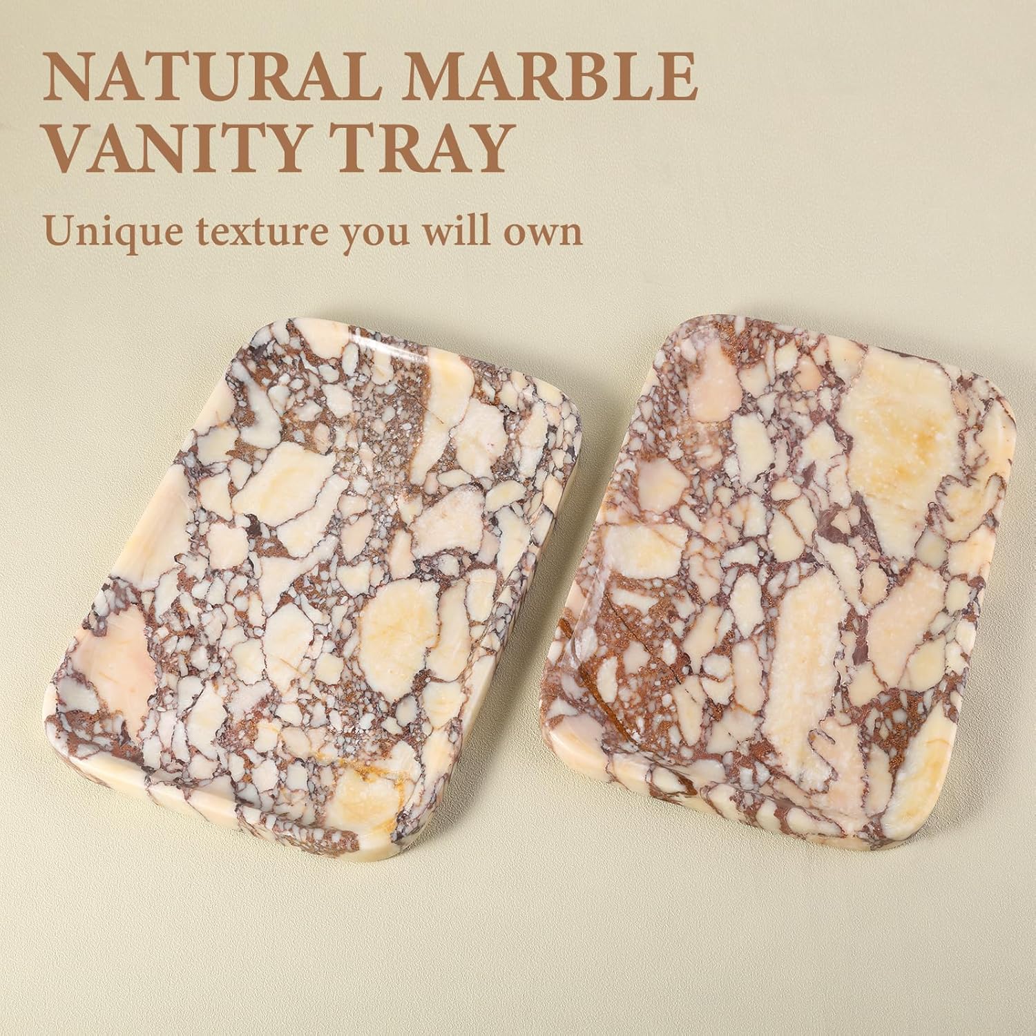 - Widely Applications: The marble bathroom tray is designed in larger sizes and are suitable for holding perfumes, candles, shampoos, jewellery even cutlery. Whether it's a kitchen, bedroom or living room countertop, the stone vanity tray fits in perfectly. Easily fits into a variety of home environments and provides convenient storage.