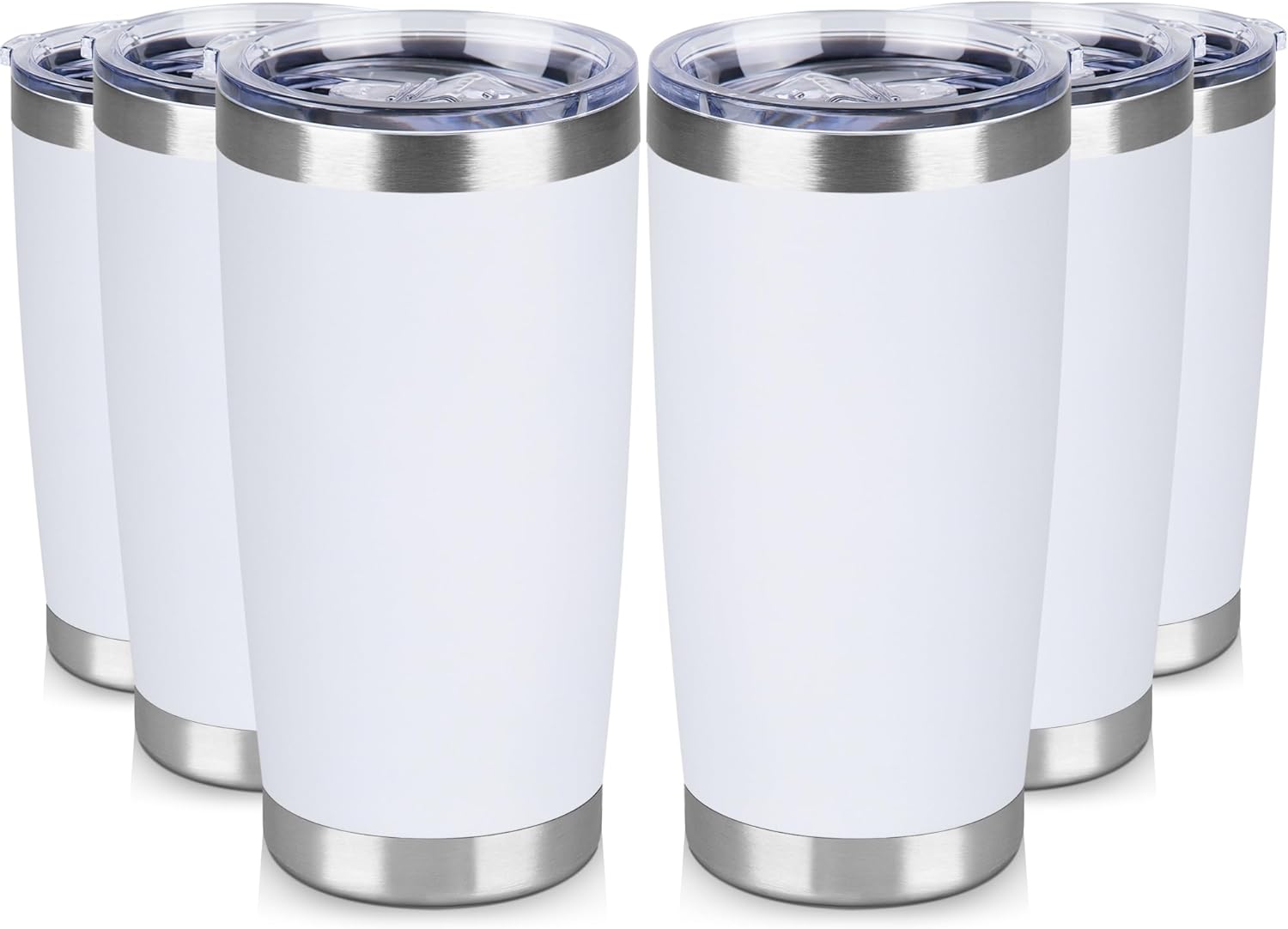 20 oz Tumbler Stainless Steel Tumblers Bulk with Lid Double Wall Insulated Coffee Tumbler Cups for Hot & Cold Drinks Powder Coated Travel Coffee Tumbler Mug Metal (White, 6 pack)
