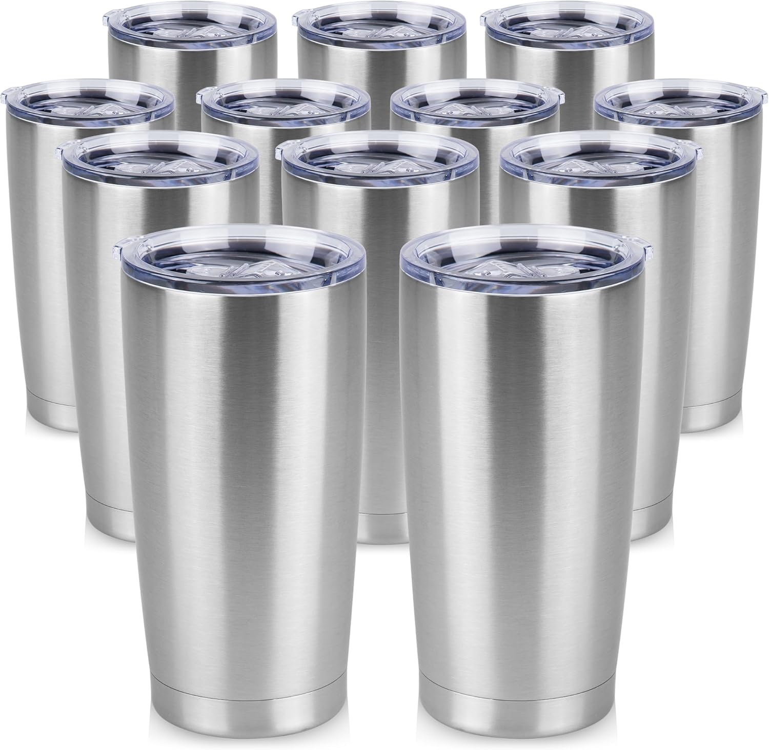 20 oz Tumbler Stainless Steel Tumblers Bulk with Lid Double Wall Insulated Coffee Tumbler Cups for Hot & Cold Drinks Powder Coated Travel Coffee Tumbler Mug Metal (Stainless Steel, 12 pack)