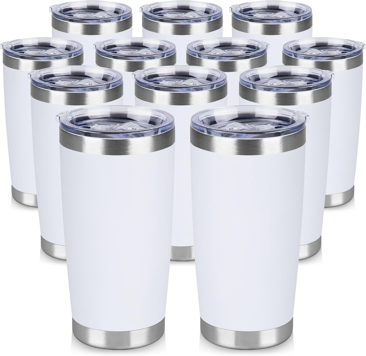 20 oz Tumbler Stainless Steel Tumblers Bulk with Lid Double Wall Insulated Coffee Tumbler Cups for Hot & Cold Drinks Powder Coated Travel Coffee Tumbler Mug Metal (White, 12 pack)