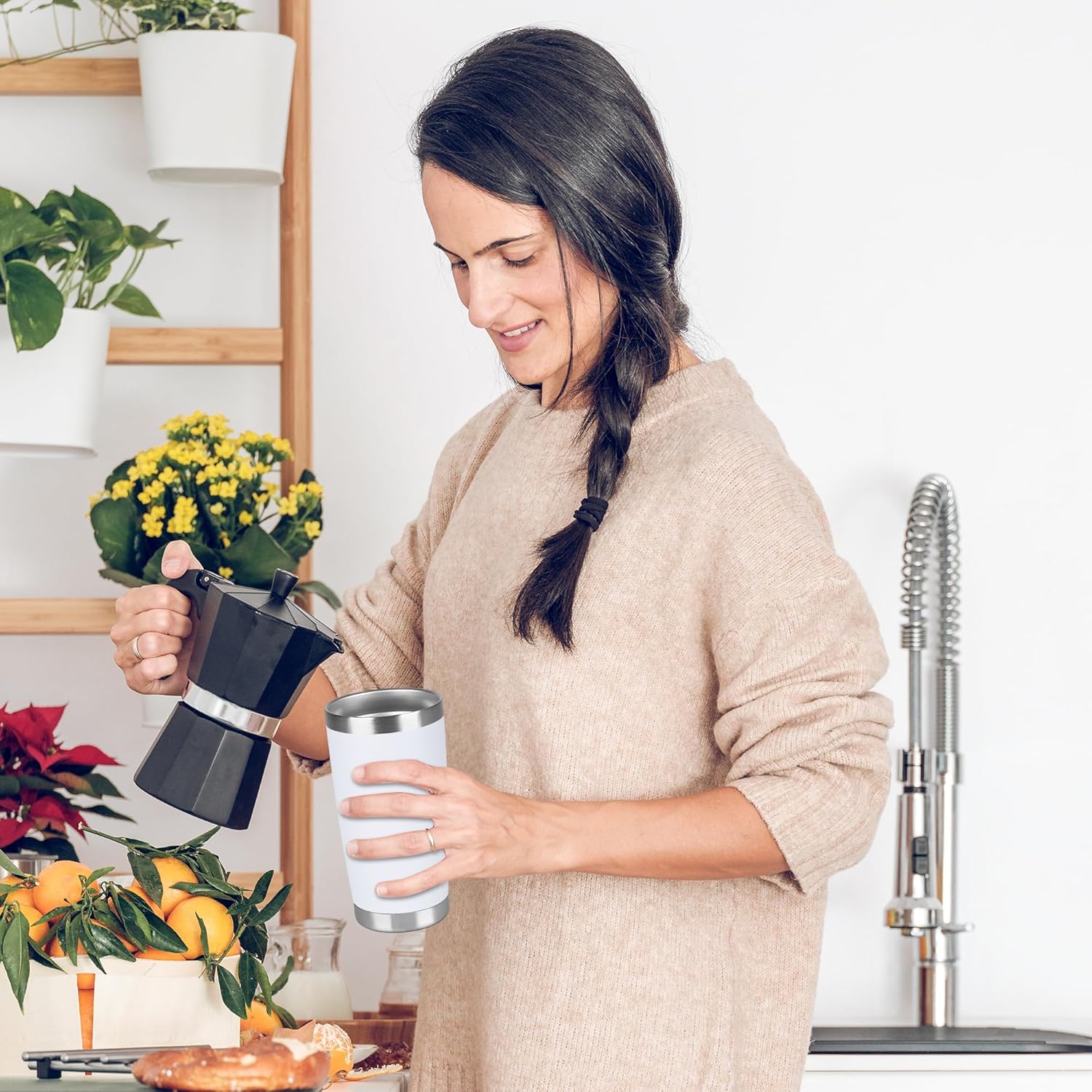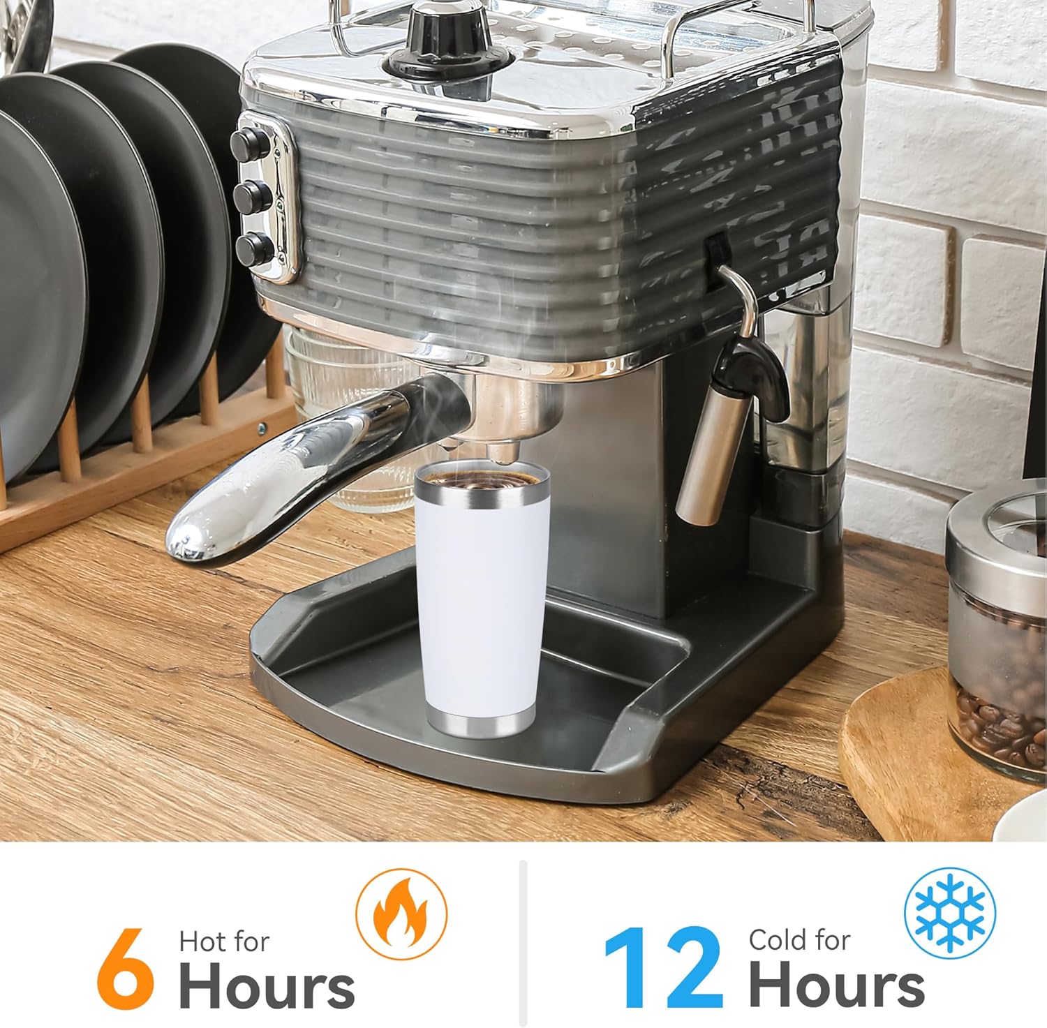 - Insulated Coffee Tumbler: Our travel tumbler features double-walled vacuum insulation technology that ensures your beverage stays hot for up to 6 hours and cold for up to 12 hours. This makes it the right choice for those who want to enjoy their favorite drinks at the perfect temperature, no matter where they are.