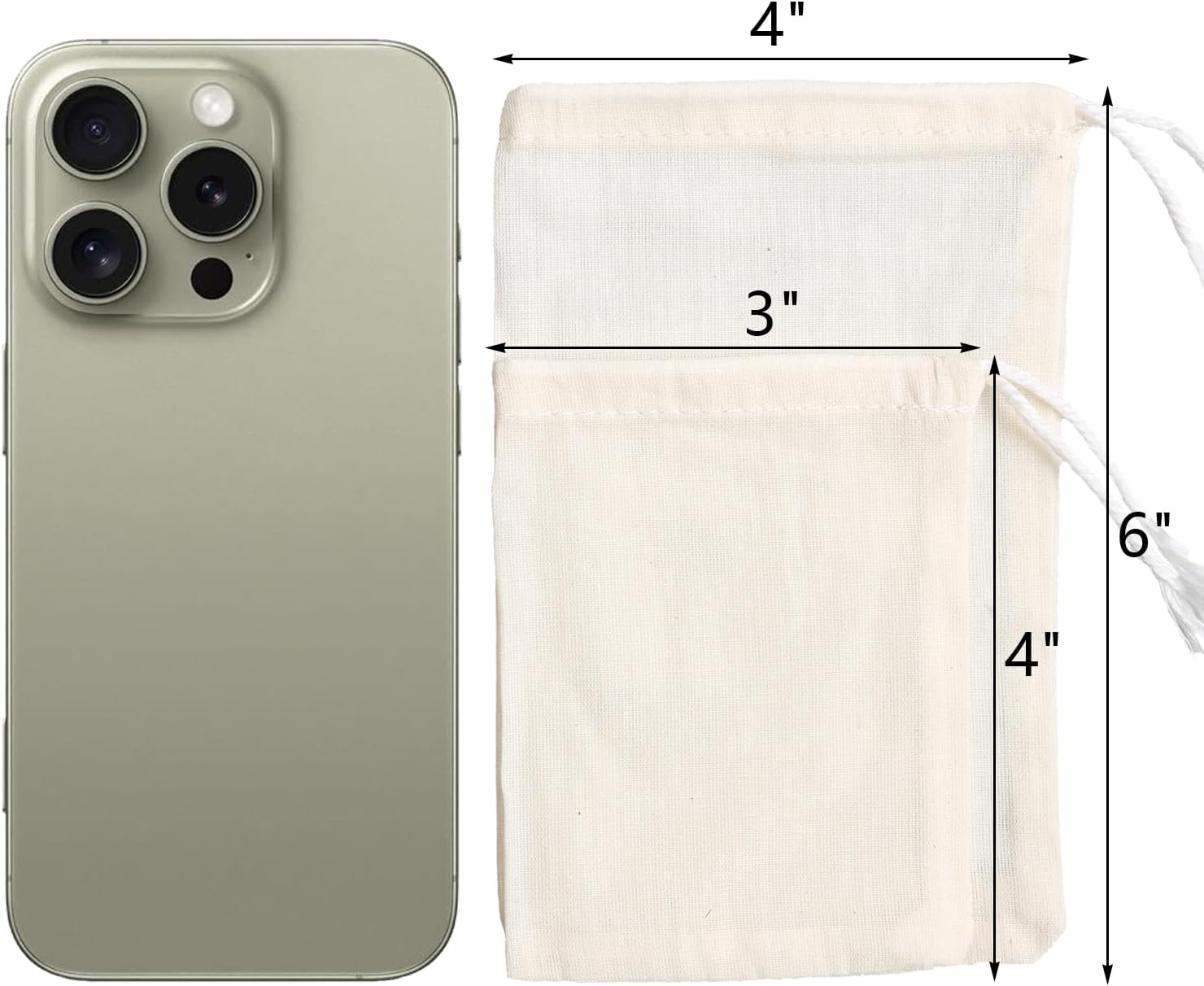 Eketirry Spice Bags, 20pcs Reusable Empty Tea Bags, Muslin Strainer Bags, Soup Bags for Cooking, Natural Cotton Fine Mesh Cheesecloth Bags for Cold Brew Coffee(3 x4" &4 x6")