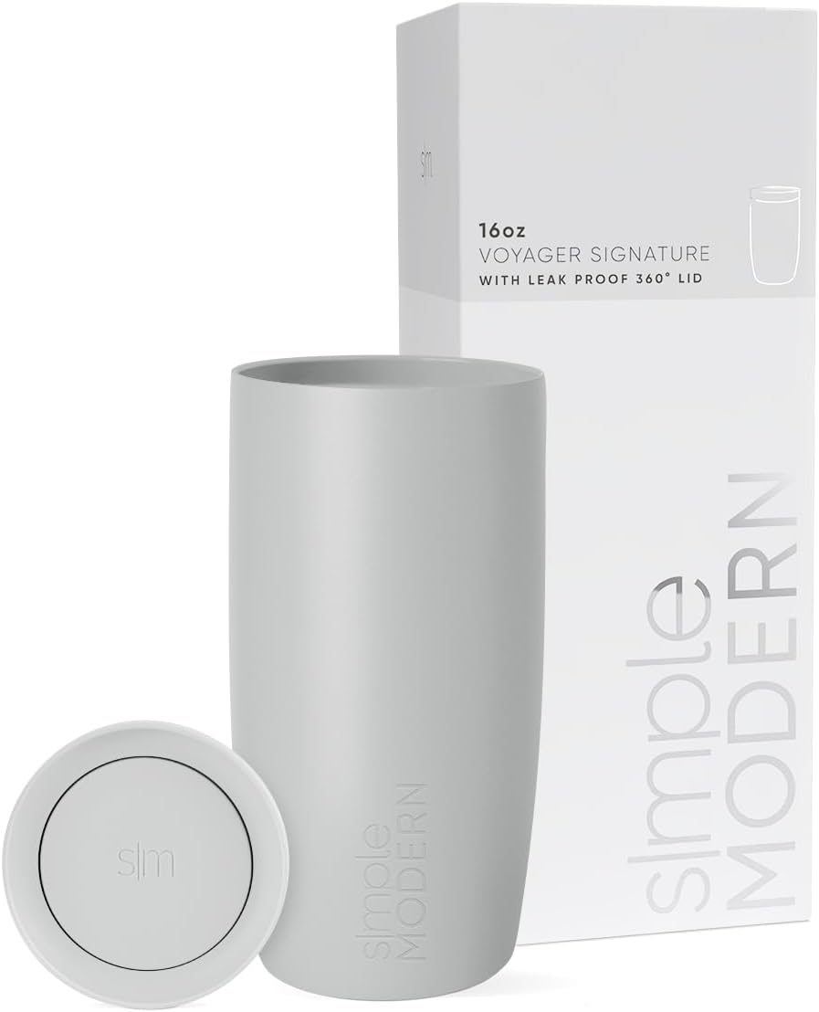 Simple Modern Travel Coffee Mug Tumbler with 360° Lid | Ceramic-Lined Insulated Stainless Steel Cold Brew Iced Coffee Cup Thermos | Gifts for Women Men Her Him | Voyager Signature | 16oz | Ice Gray