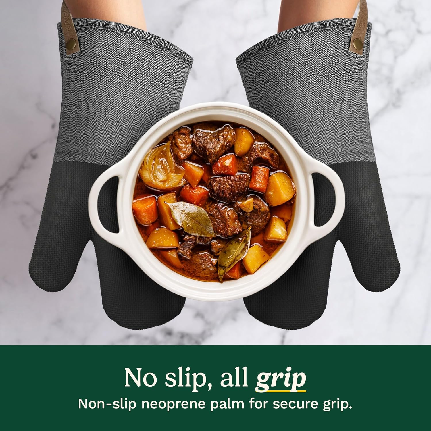 Cuisinart Heritage Kitchen Oven Mitts – Heat-Resistant Kitchen Mitts for Oven with Non-Slip Neoprene Palm, Long Cuff, and Cotton Filling – Durable Oven Gloves for Cooking, Baking, & Grilling