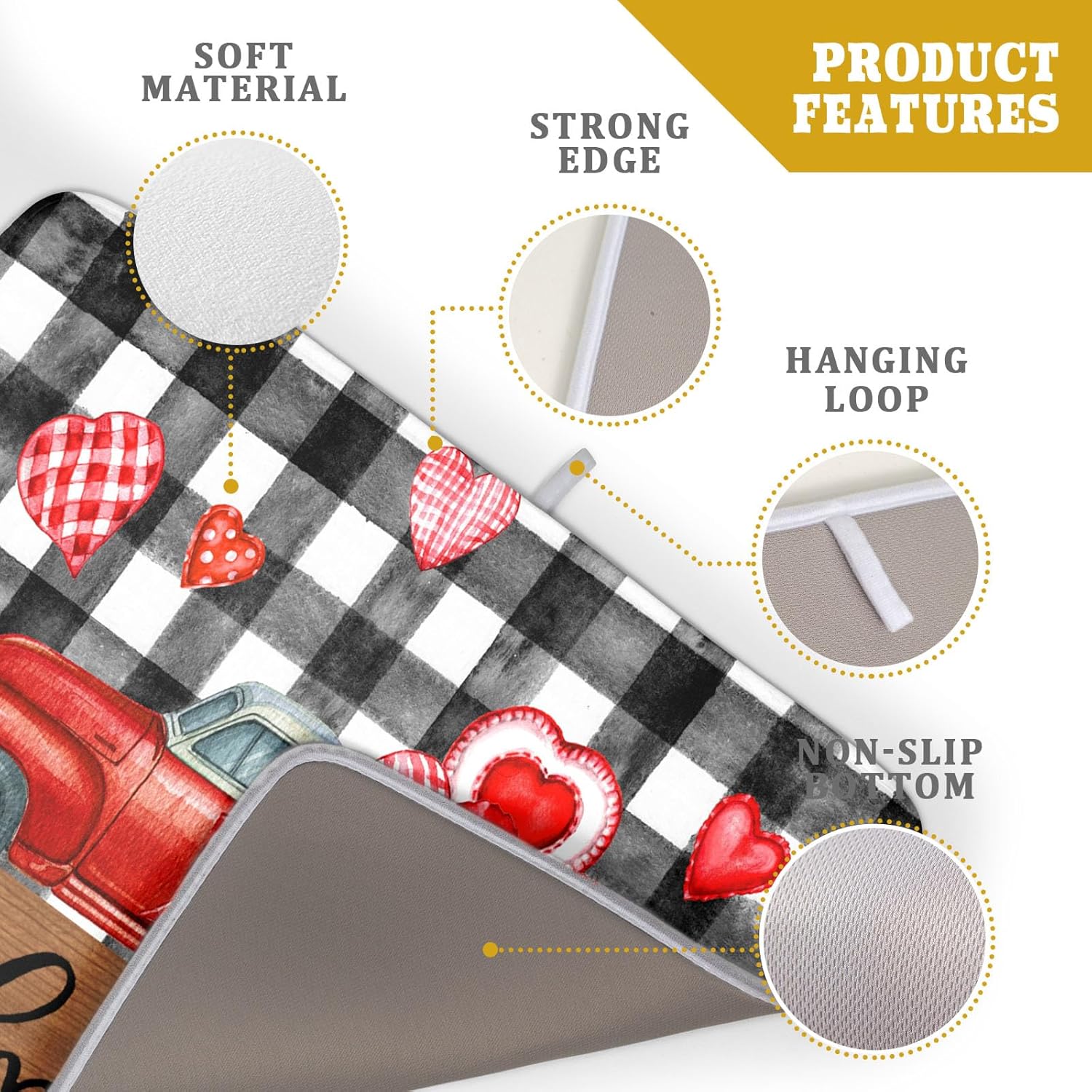 - 3【Unique Design】: Black white buffalo plaid love dish mat with vibrant red heart and truck patterns, which can add more love spirit to your kitchen office or coffee bar counter. The drying mat for kitchen counter with unique hanging rope design that can be hung without occupying any space,soft and foldable, easy to store.