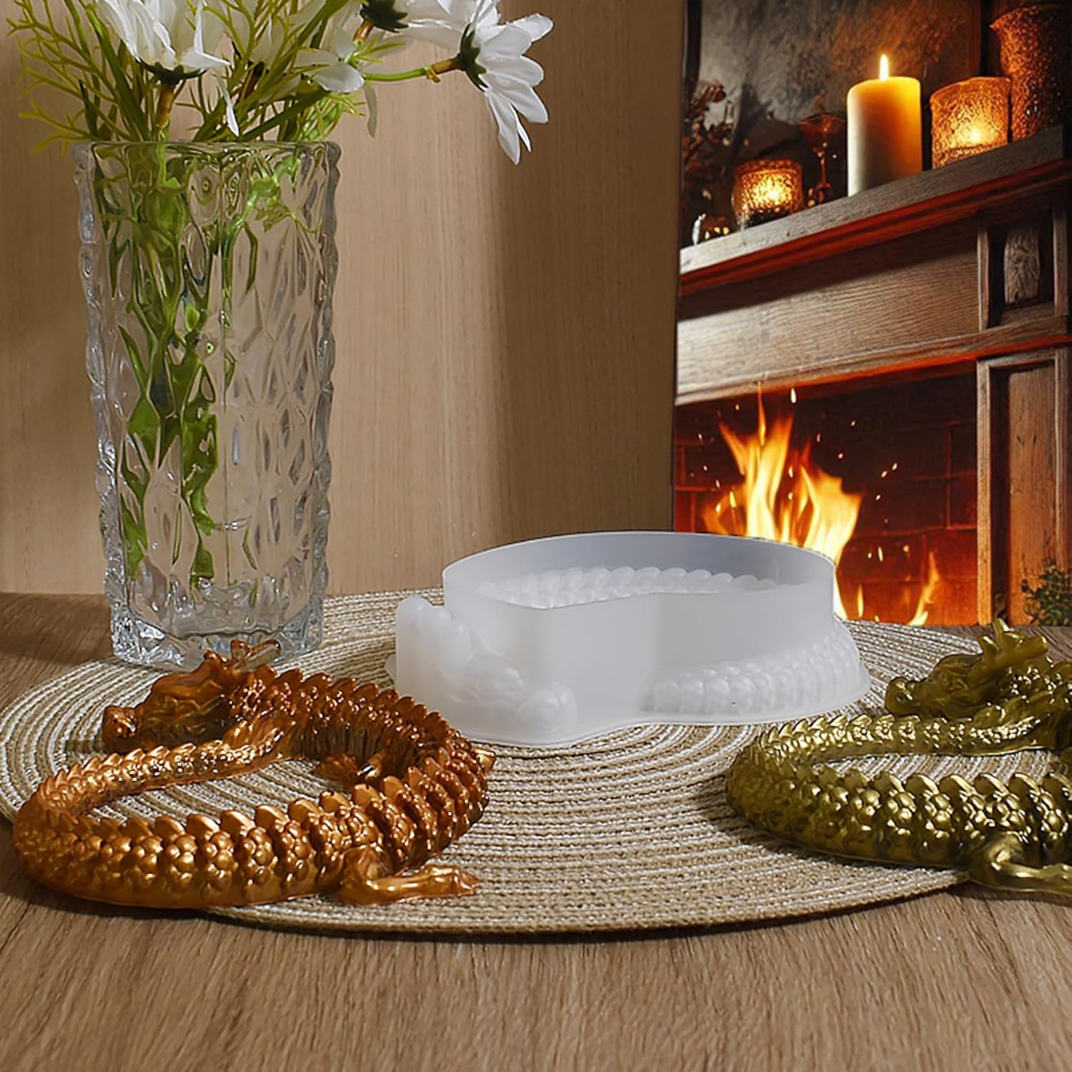 Diamond Dragon Mold Long Dragon Resin Mold Round Dinosaur Mold Animal Resin Casting Mold Resin Making Molds Silicone Mold for Candle Home Decorate Mold 3D Animal Mold Candle Making Mold