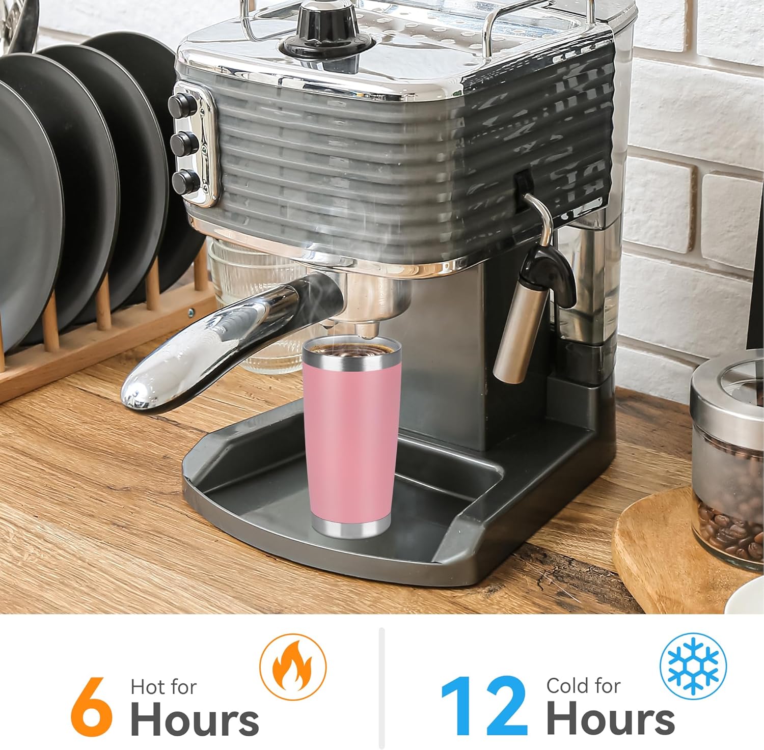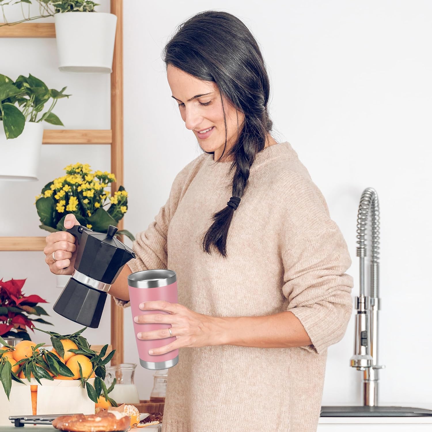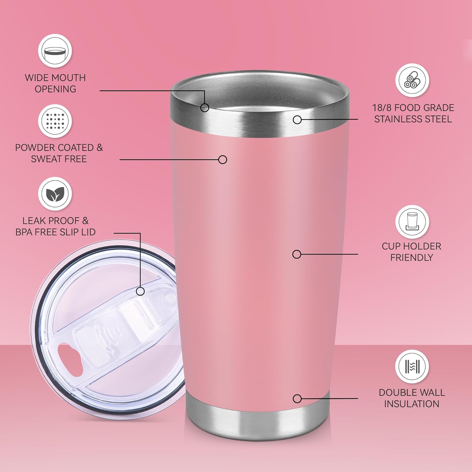 20 oz Tumbler Stainless Steel Tumblers Bulk with Lid Double Wall Insulated Coffee Tumbler Cups for Hot & Cold Drinks Powder Coated Travel Coffee Tumbler Mug Metal (Rose Pink, 1 pack)