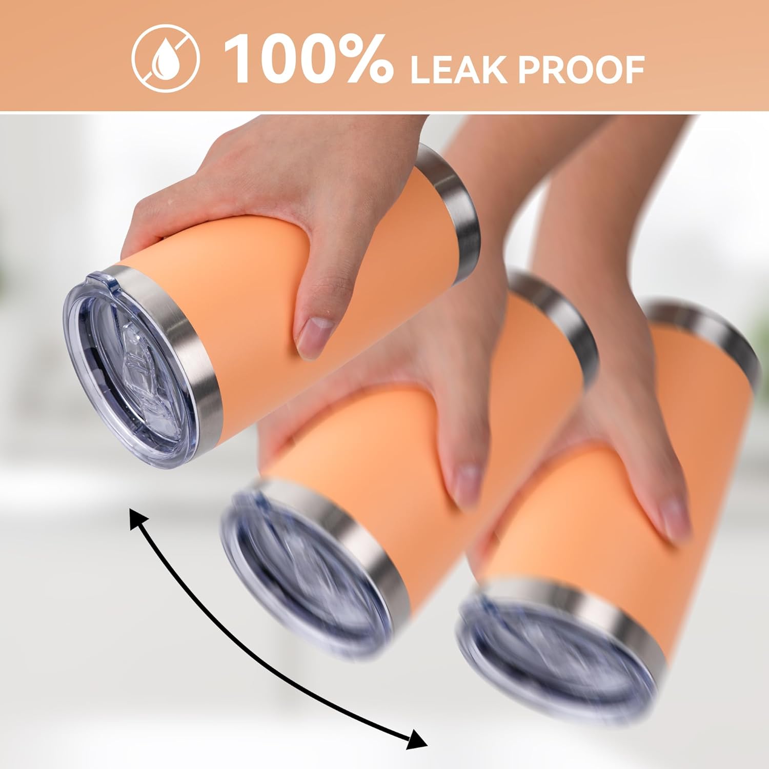 20 oz Tumbler Stainless Steel Tumblers Bulk with Lid Double Wall Insulated Coffee Tumbler Cups for Hot & Cold Drinks Powder Coated Travel Coffee Tumbler Mug Metal (Cream Orange, 6 pack)