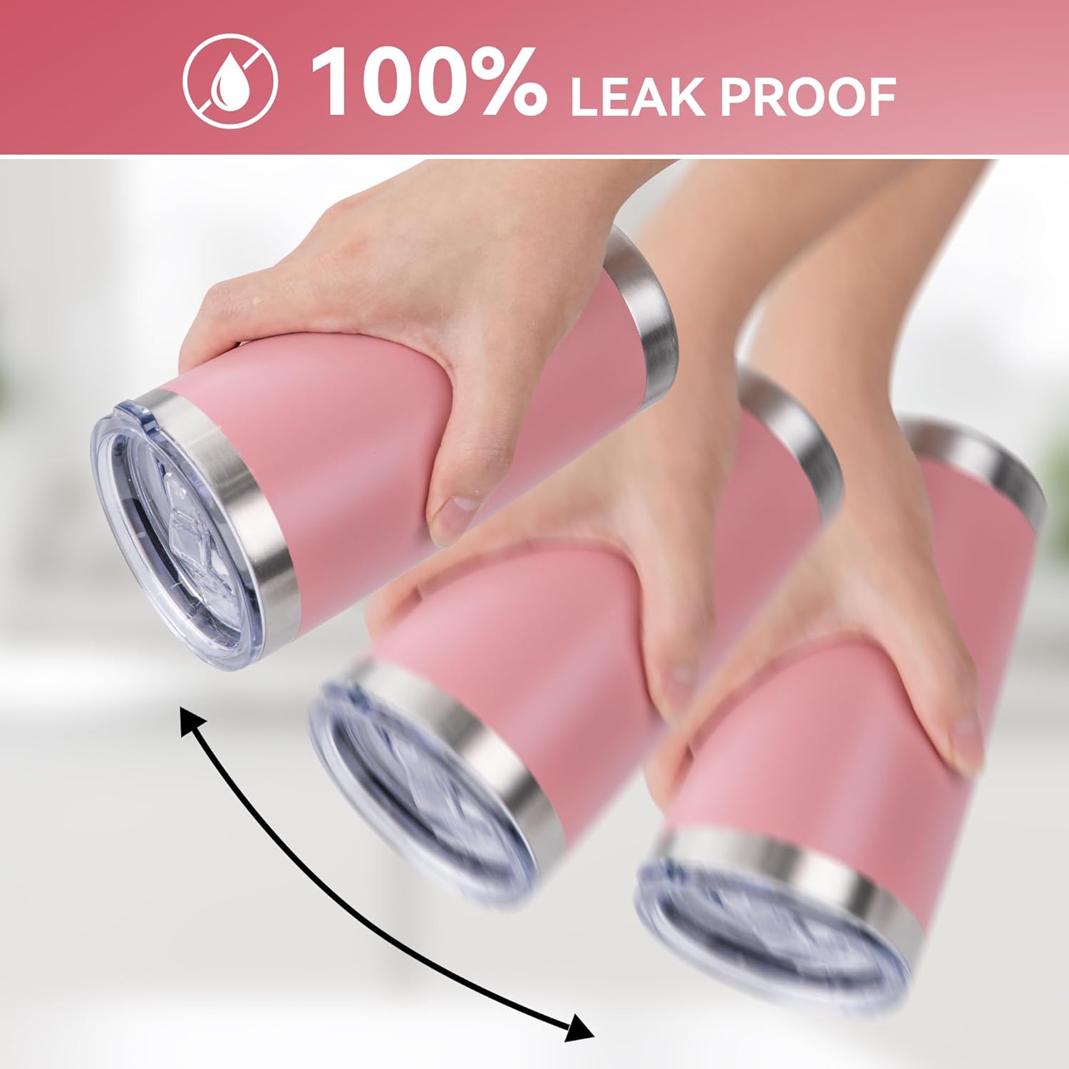 20 oz Tumbler Stainless Steel Tumblers Bulk with Lid Double Wall Insulated Coffee Tumbler Cups for Hot & Cold Drinks Powder Coated Travel Coffee Tumbler Mug Metal (Rose Pink, 12 pack)