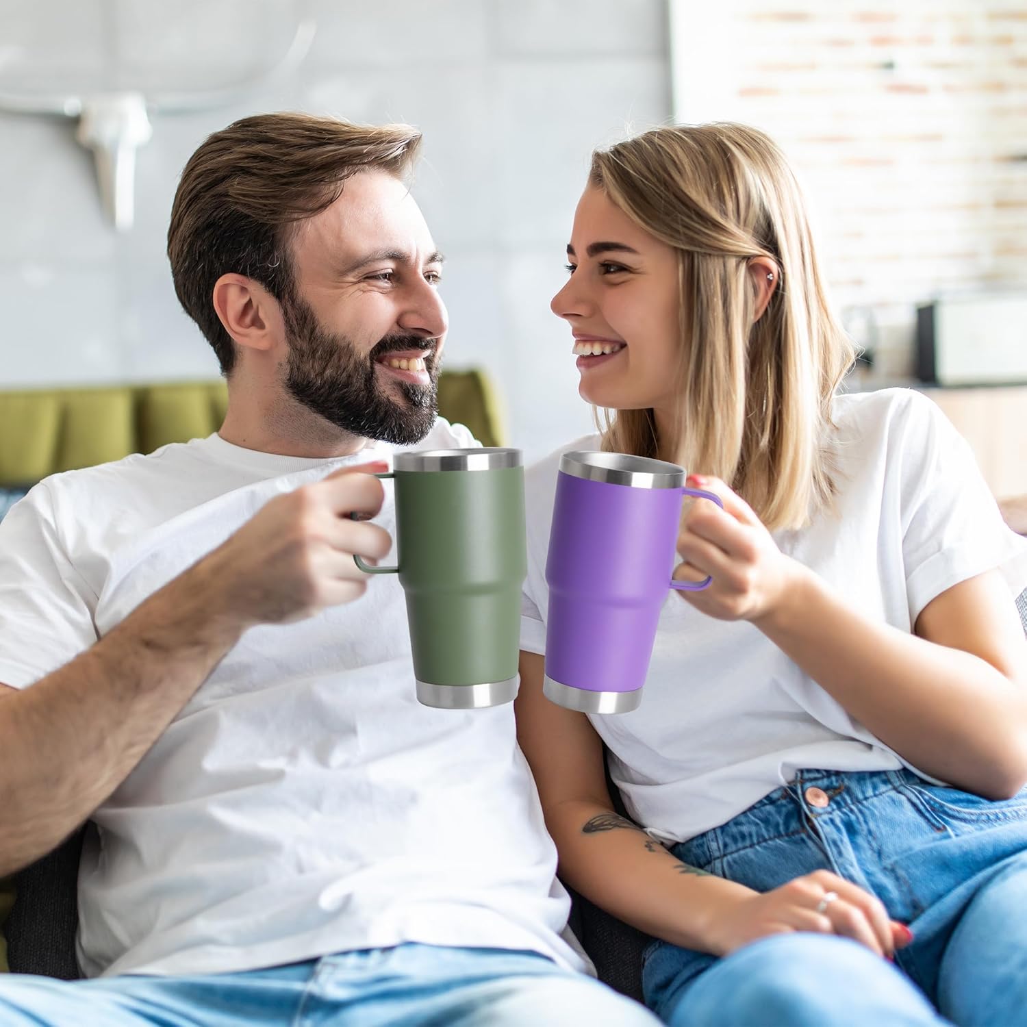 - Stainless Steel Tumblers with Handle:The 20oz coffee mug is made of thickened 304 stainless steel, liner of coffee mug will not produce any taste and will not rust.The cup comes with a sturdy welded handle for easy grip and ease of use