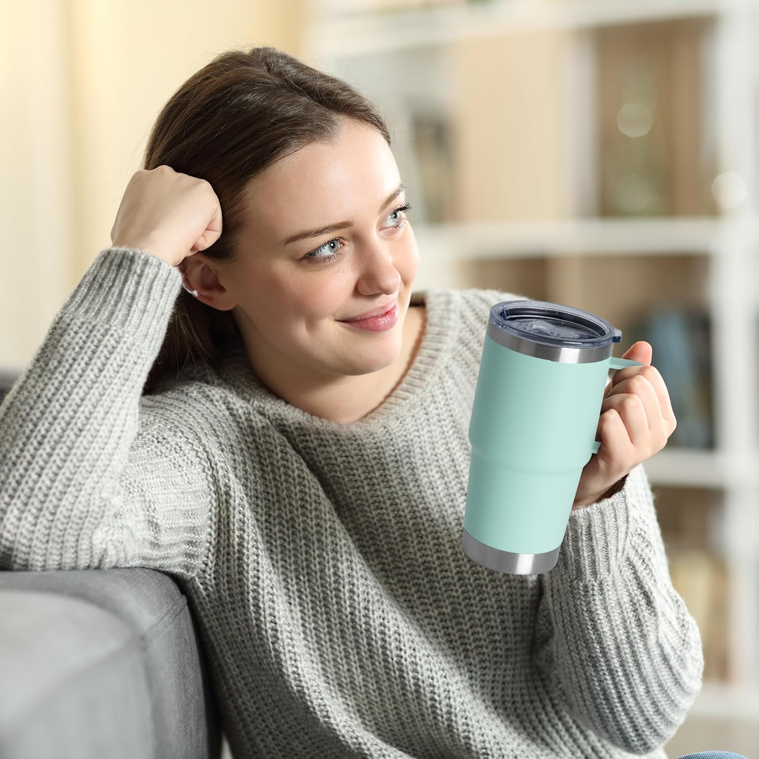 HASLE OUTFITTERS 20oz Tumbler with Lid, Stainless Steel Tumbler with Handle, Metal Insulated Travel Coffee Mug with Handle, Double Wall Vacuum Spill Proof Tumbler Cup, Mint Green 1 Pack
