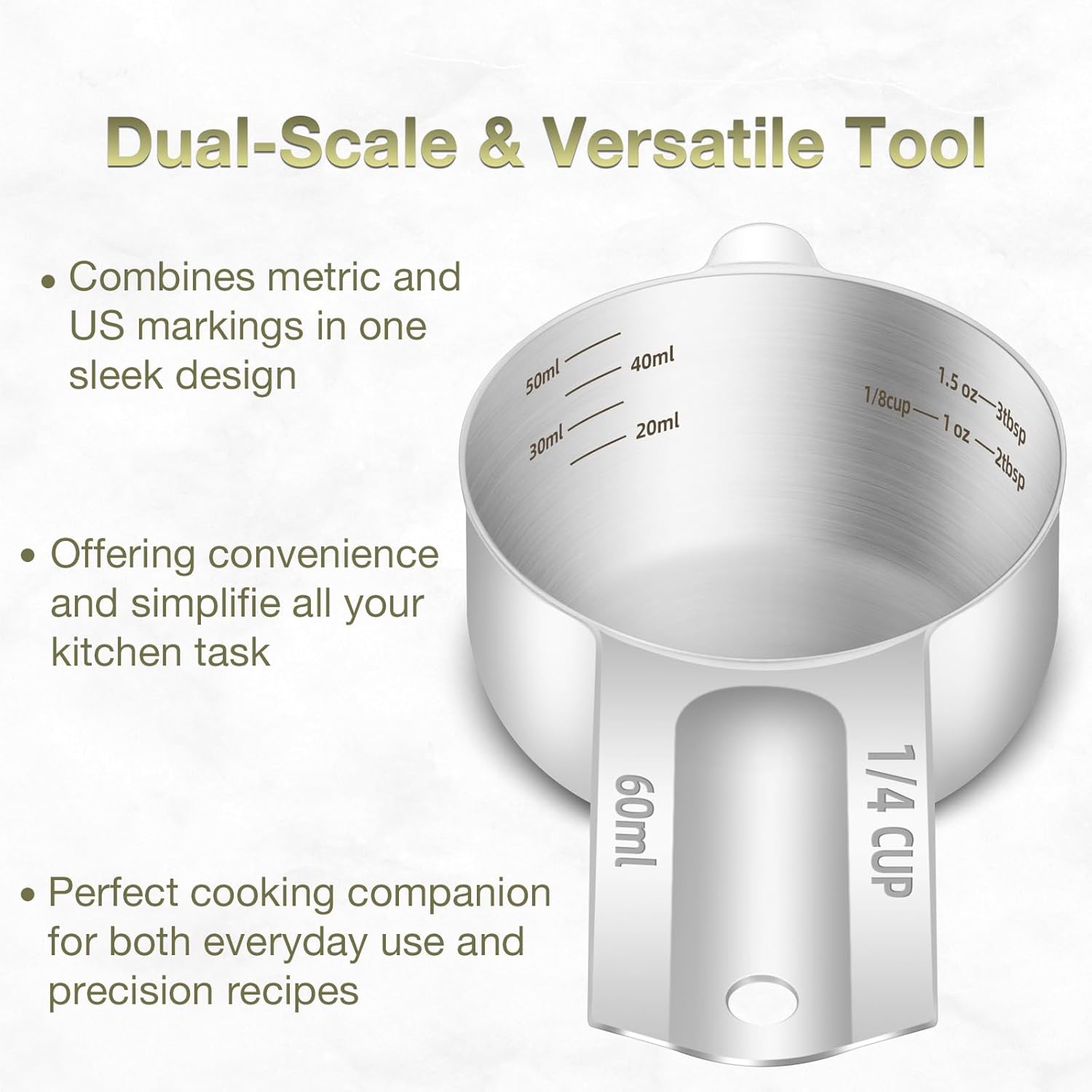 1PCS 1/4Cup (60ml, 2oz) Single Measuring Cup, Etched Inner Scale Stainless Steel Measure Scoop, Metric and US Measurement, Dishwasher Safe