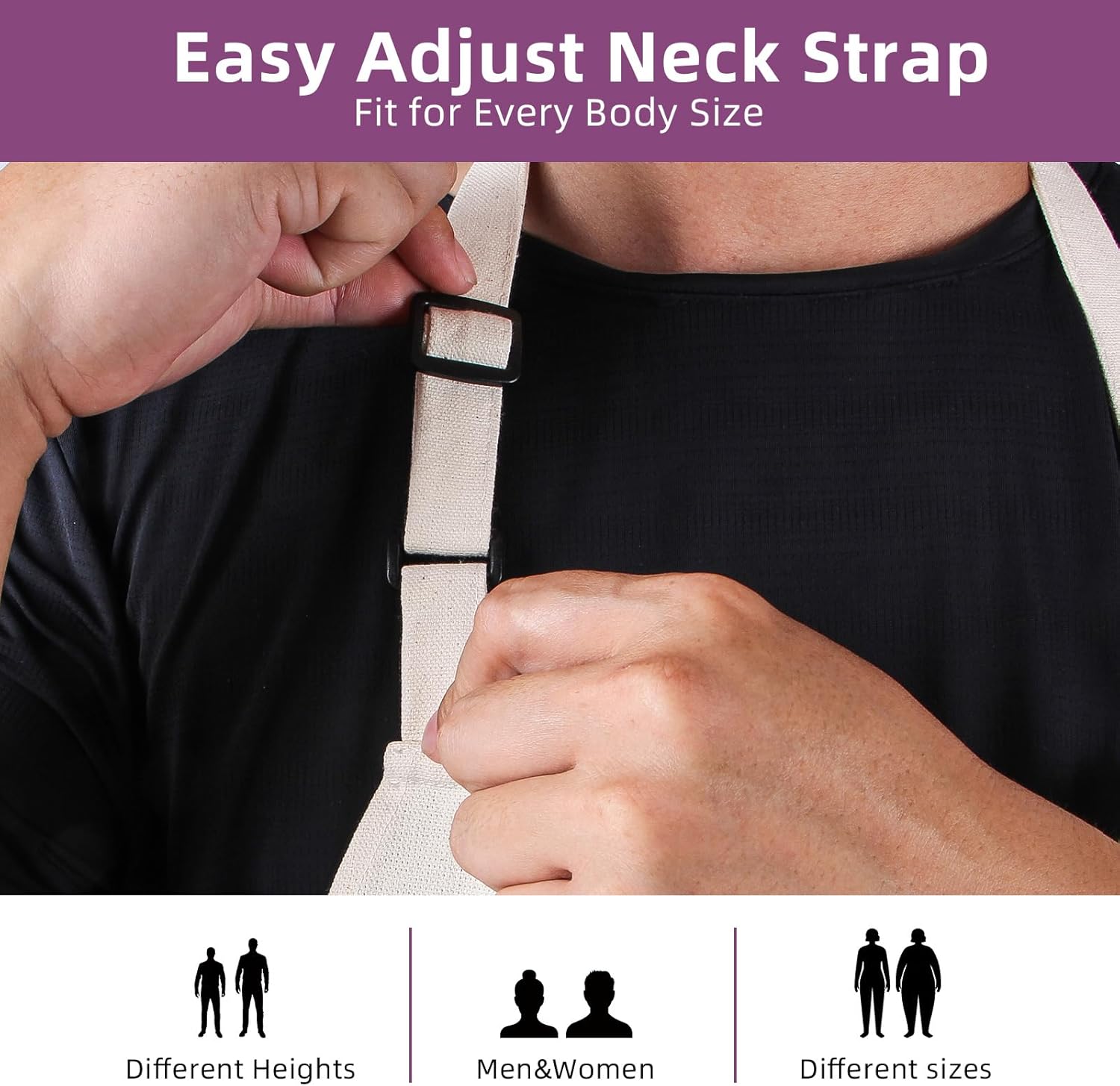 - Comfortable Fit – Adjustable for Every Body The cross-back straps reduce neck pressure and are fully adjustable for a perfect fit. Whether you’re tall, short, slim, or broad-shouldered, this apron adjusts to you. It’s great for long hours in the kitchen or at the grill.