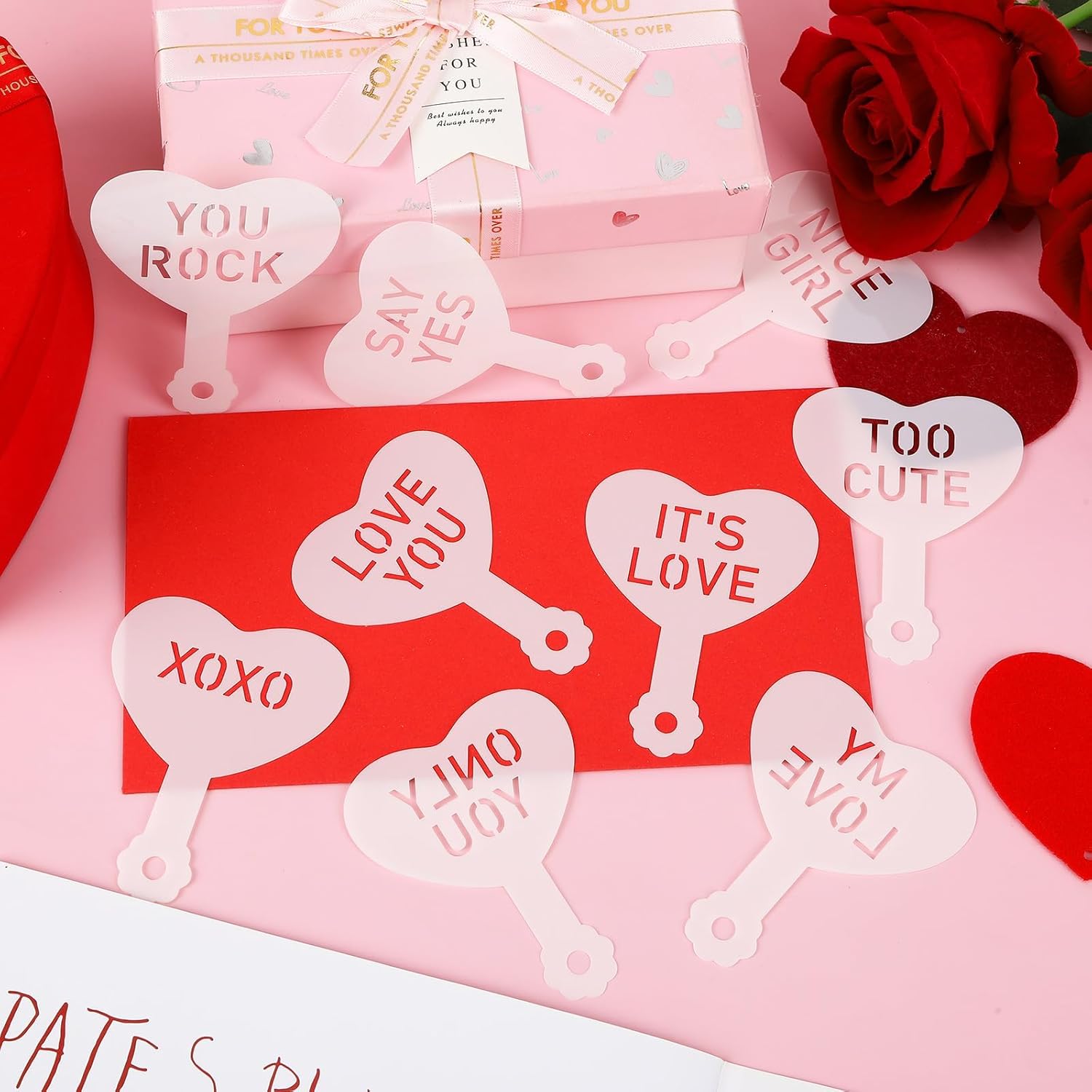 - Easy to Use: You only need to cover the conversation hearts cookie stencils on coffee, biscuits or cakes, then draw on the object you want to decorate with a brush or icing sugar, and then take off the cookie stencils to make beautiful baked goods and save your time and energy