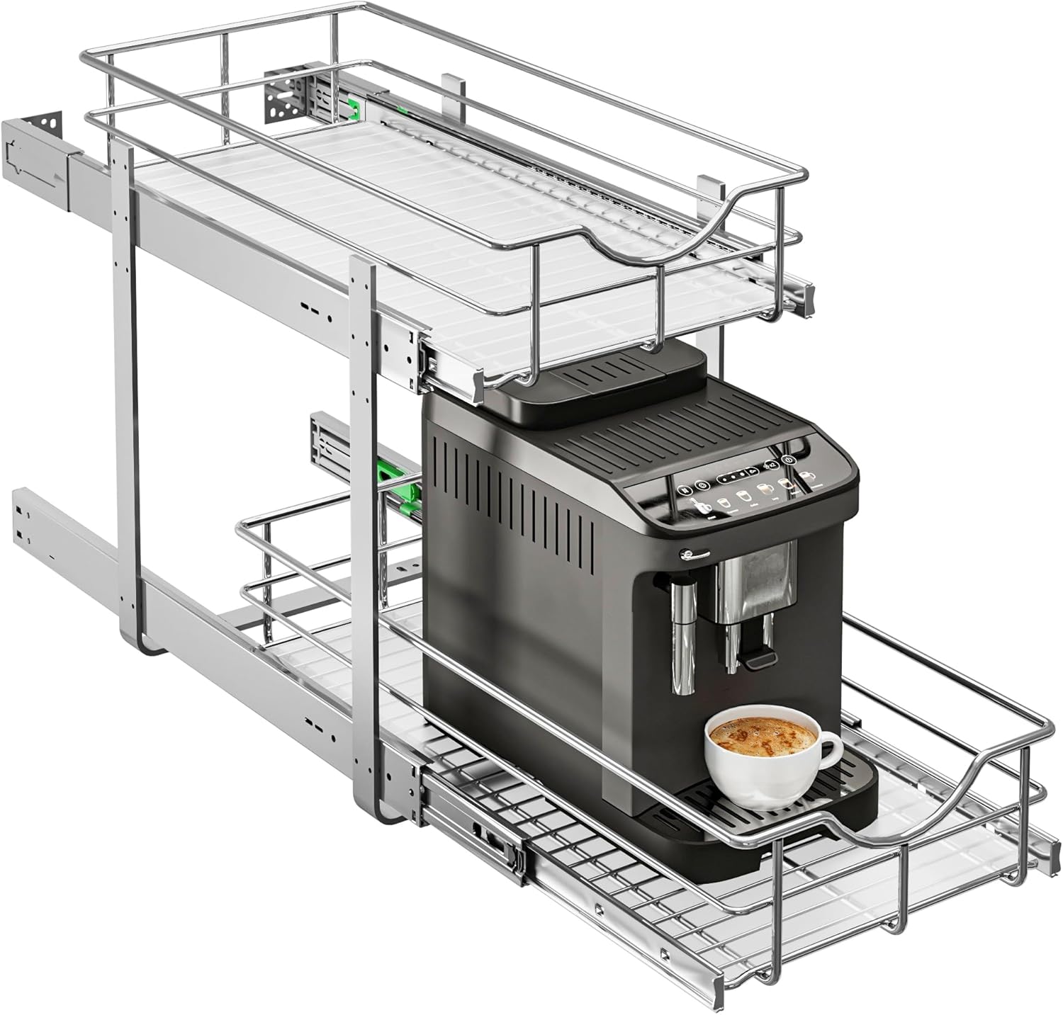 WelFurGeer 2-Tier Kitchen Cabinet Pullout Shelf and Drawer Organizer, Soft Close Pantry Pull Out Shelves, Heavy Duty Pull Out Cabinet Organizer with Shelf Liner for Kitchen Cabinets, Pantry Storage