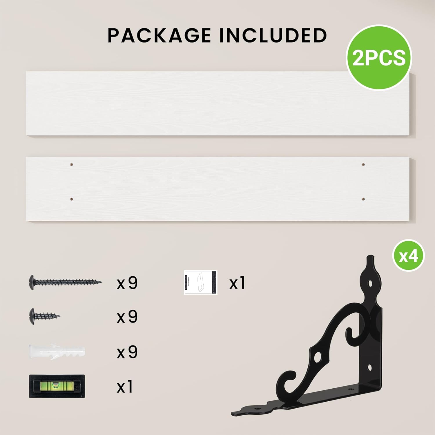 - Perfect Home Decor: This wood shelf fits rustic style, or vintage style home decor, rustic wood grain and exquisite S-shaped brackets will make your home full of modern and elegant romance. Our floating shelf makes full use of the wall, and let your room and bathroom look so cute