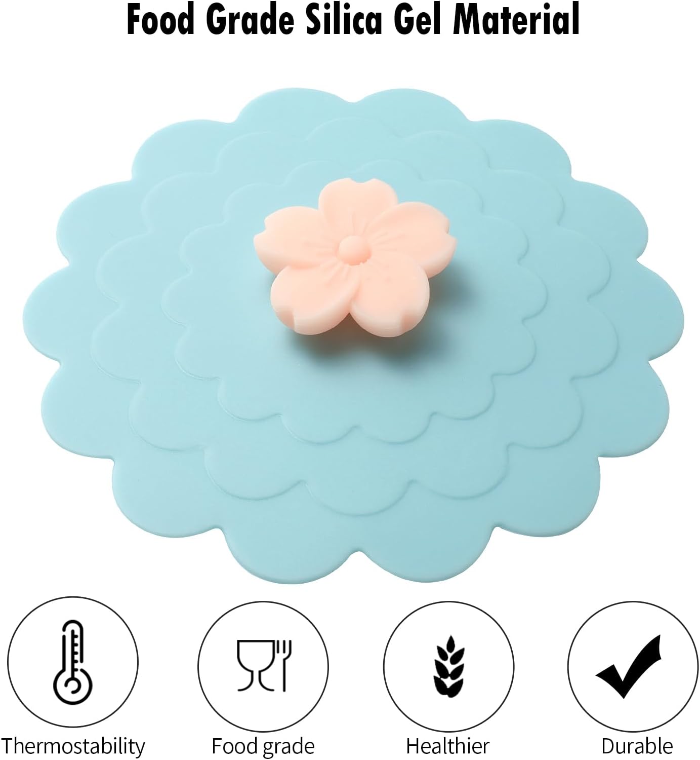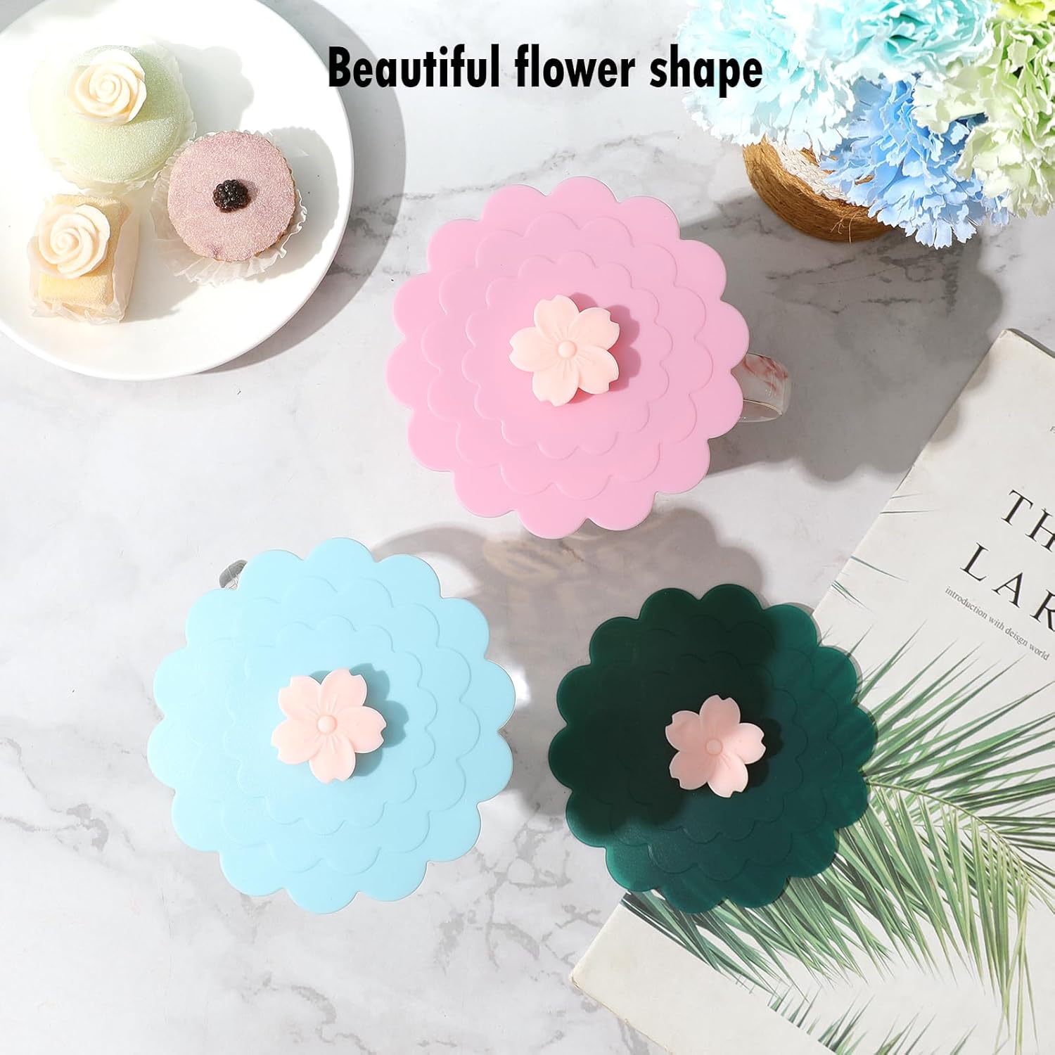 Peach blossom Silicone Cup Covers (Set of 3) , Multicolored Silicone Lids for Mugs, Cups, Tea Pots,Flexible Mug Covers,Hot Cup Lids for Coffee & Tea