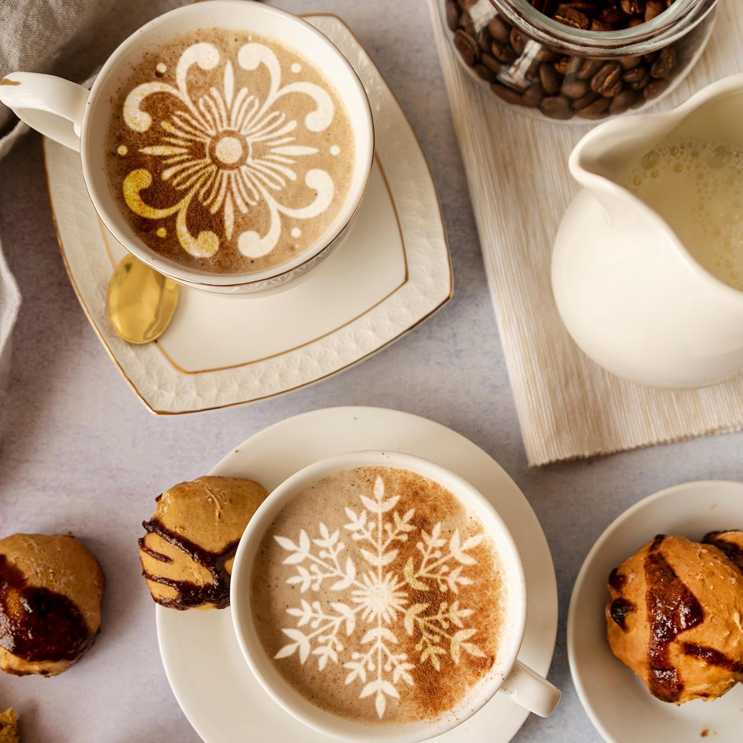 - Mandala Latte Art Baking Stencils: You will receive 25 pieces of baking stencils featuring mandala and snowflake patterns, these stencils are ideal for coffee topper decor, royal icing cookies decor etc