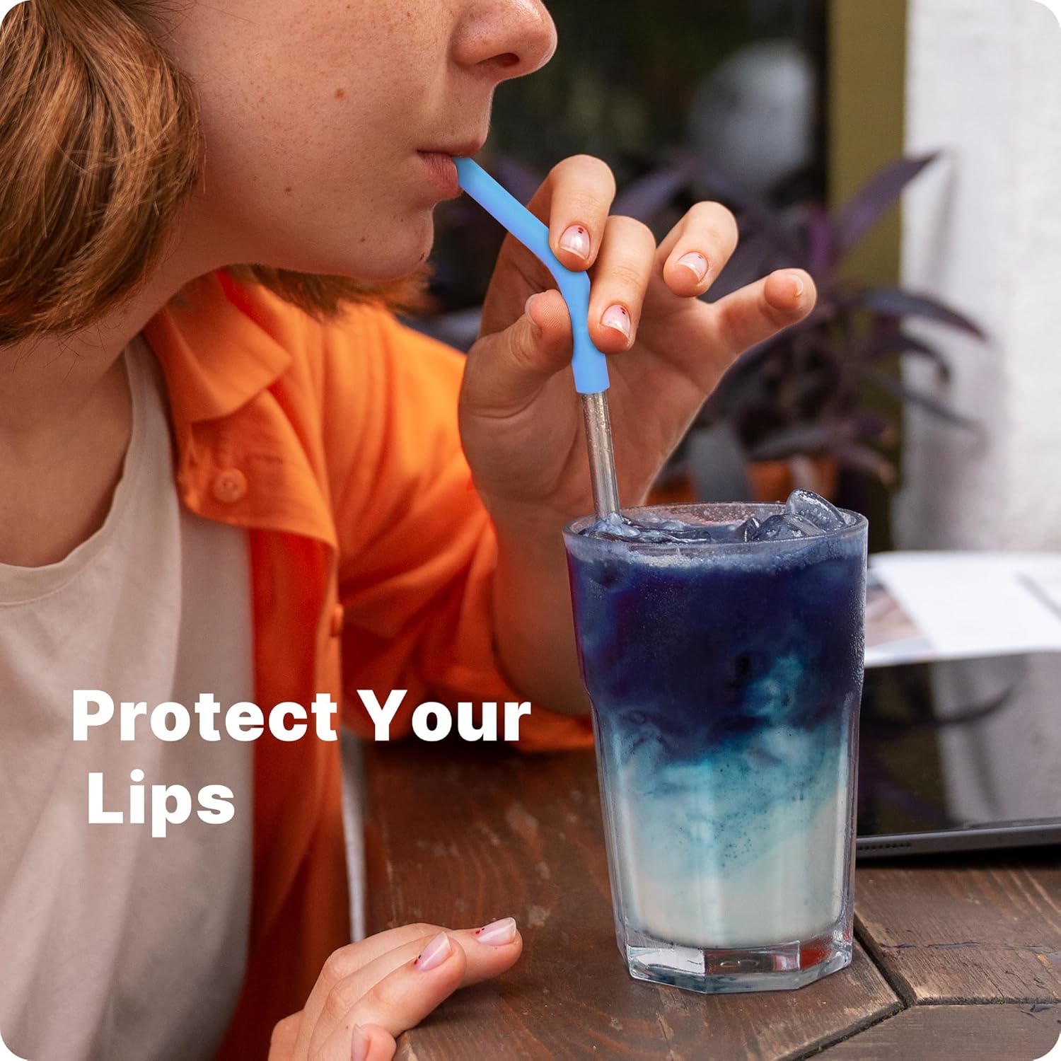 - 【Soft & Comfortable】Silicone straw tips are comfortable and soft to touch, preventing your lips from direct contact with cold, hard metal straws and avoiding that pesky metallic taste. Avoid teeth bumping, reduce lip scratches, worry-free biting